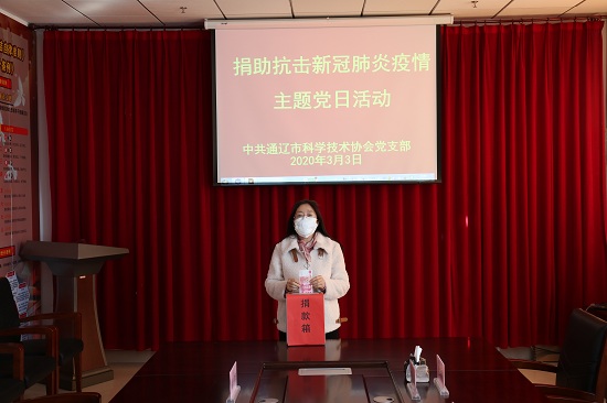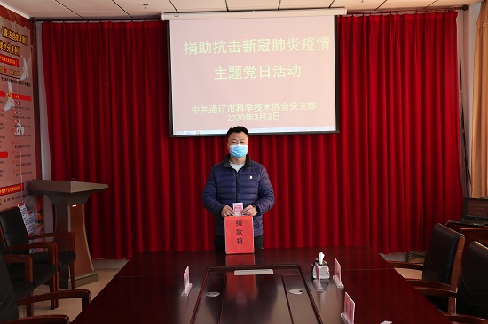为充分展现出通辽市科协党员干部职工强烈的政治责任感和大局意识,展现出“疫情就是命令,防控就是责任”的担当精神,通辽市科协党支部积极响应党中央号召,组织党员开展“捐助抗击新冠肺炎疫情”主题党日活动。市科协党组书记、主席、党支部书记包海梅同志带头捐款,支部广大党员和职工踊跃参与。本次共由21名党员和10名非党职工参与捐款,共计6400.00元,支部将本次党员爱心捐款全额上缴至中共通辽市直属机关工委党费账户,用于抗击疫情的工作。