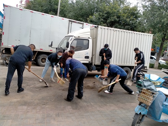 通辽市科协党员干部根据社区创城需求分配任务,众人分头行动,三两结伴自觉投入到社区环境卫生清理活动中。清扫街道死角、拖走无序堆放的建筑垃圾、垃圾铲除装袋、平整清理土地等等。党员干部们争先恐后、齐心协力,不仅对小区内的环境、私乱停放的自行车进行了全方位的清理与归位,同时,还整理了无物业小区内无序堆放的杂物,居民生活区隐蔽角落里的垃圾也被“一扫而光”。