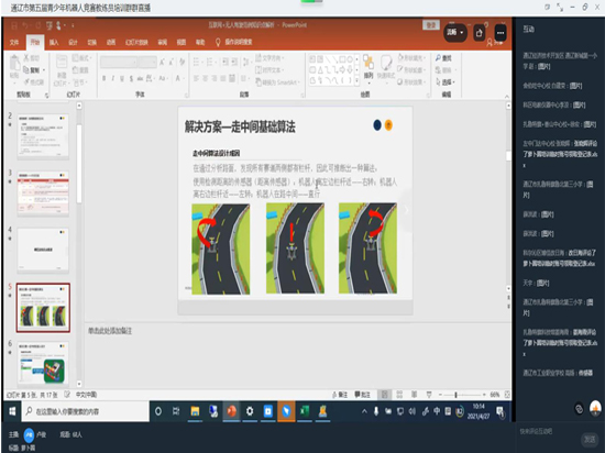 为进一步加强科技辅导员队伍建设,提升青少年机器人教练员专业水平,推动青少年机器人竞赛活动创新发展,按照疫情防控常态化要求,积极创新培训模式,发挥互联网平台作用,采取钉钉直播的形式开展培训交流,得到全市中小学科技辅导员的热情参与。