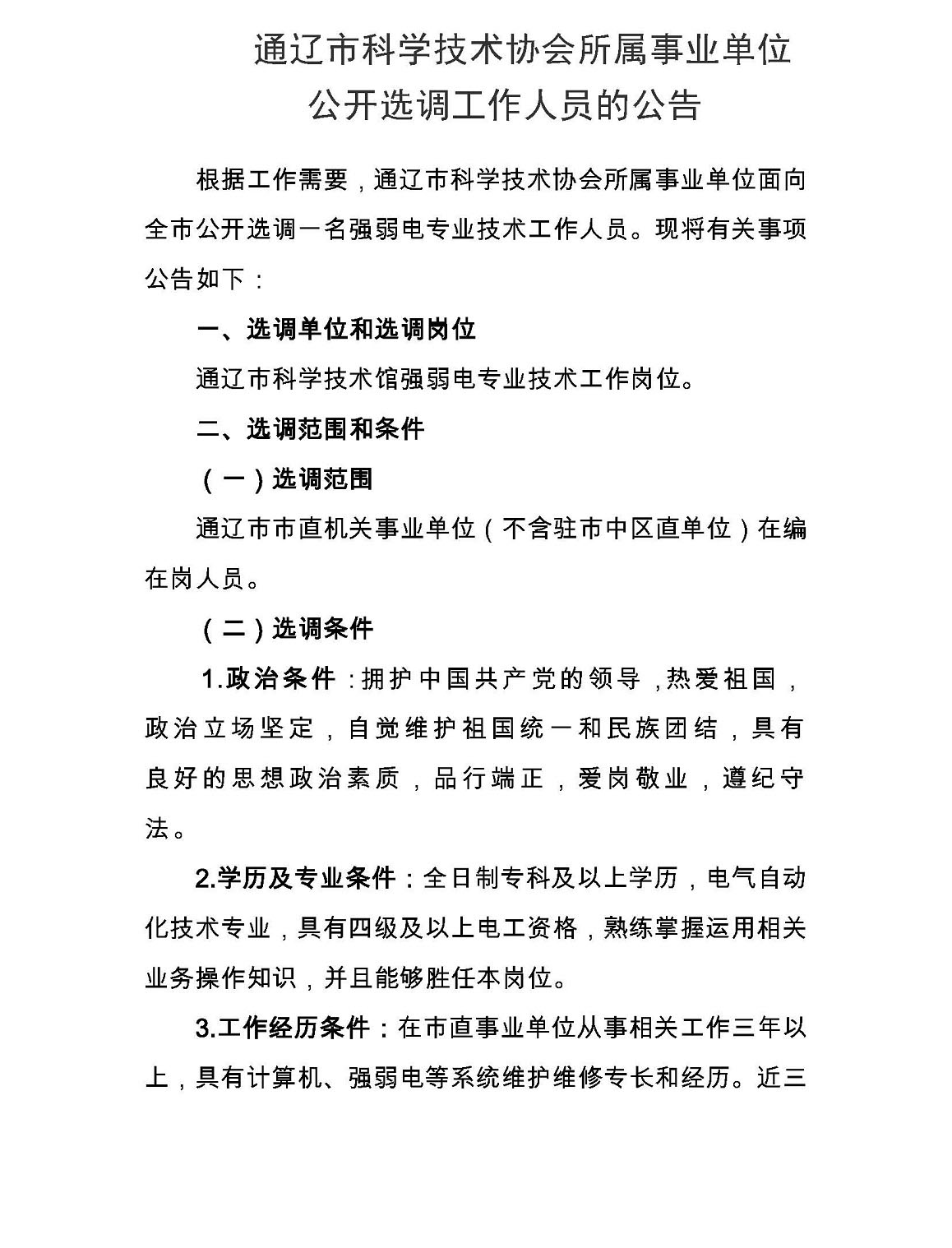 通辽市科学技术协会所属事业单位 公开选调工作人员的公告