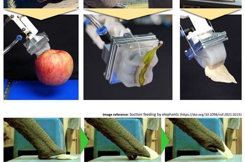 这种象鼻抓手,可利用其柔软的结构、可拉伸的薄壁和允许抓手改变形状的电线,通过捏吸融合机制抓取物体。研究团队希望这项新技术能够适用于各个领域,因为它不仅能有效运输各种尺寸的物体,而且能以稳定的方式抓取和组装物体,而不需要使用任何复杂的机械装置或传感器。