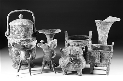 图为邵家棚遗址墓葬出土的铜礼器组合(资料照片)。