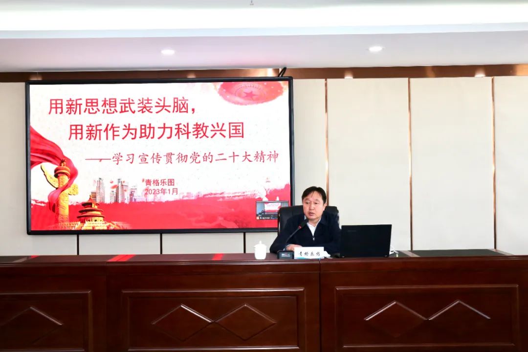 1月18日上午,为进一步深入学习贯彻党的二十大精神,深刻领会、准确把握二十大的精神实质和丰富内涵,切实引导全市科协系统党员干部把思想、认识、行动统一到党的二十大精神上来,根据市委统一部署,市科协党组书记、主席青格乐图为全市科协系统党员干部讲授了一节题为《用思想武装头脑 用新作为助力科教兴国》的报告。会议以视频形式召开,市科协领导班子、市直科协系统全体党员干部,以及市直学会负责人、科技工作者代表在主会场参会,各旗县市区科协设分会场。会议由市科协党组成员、副主席耐日勒图主持。