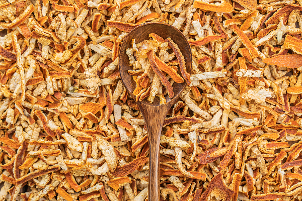 陈皮不仅能入药,还常可用作泡茶、煮粥、煲汤、烹调、做凉果等。例如,《金匮要略》记载的生姜橘皮汤,功效主要是行滞、止呕,可治干呕、手足厥冷等症。陈皮、生姜是常用祛痰止咳对药。陈皮味辛、苦,性温,归脾、肺经,可理气和中、降逆止呕、燥湿化痰;生姜味辛,性微温,归肺、脾、胃经,可以散寒解表、降逆止呕、化痰止咳。两味合用,能起到降逆止呕、行气化痰、散寒止咳的作用。(杨玲玲)