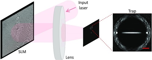 由空间光调制器(SLM)印记的相位剖面和在捕获平面中产生的光强度剖面。图片来源:物理学家组织网