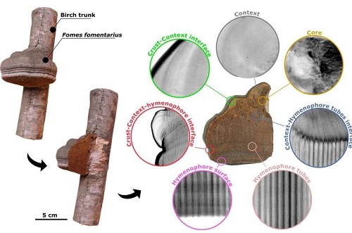 芬兰国家技术研究中心的研究表明,木蹄层孔菌的子实体是一种功能分级的材料,具有三个不同的层。菌丝体网络是所有层中的主要成分,但每一层中菌丝体都表现出非常独特的微观结构,具有独特的方向、纵横比、密度和分枝长度。细胞外基质充当增强黏合剂,在数量、聚合物含量和互连性方面,每一层都有所不同。