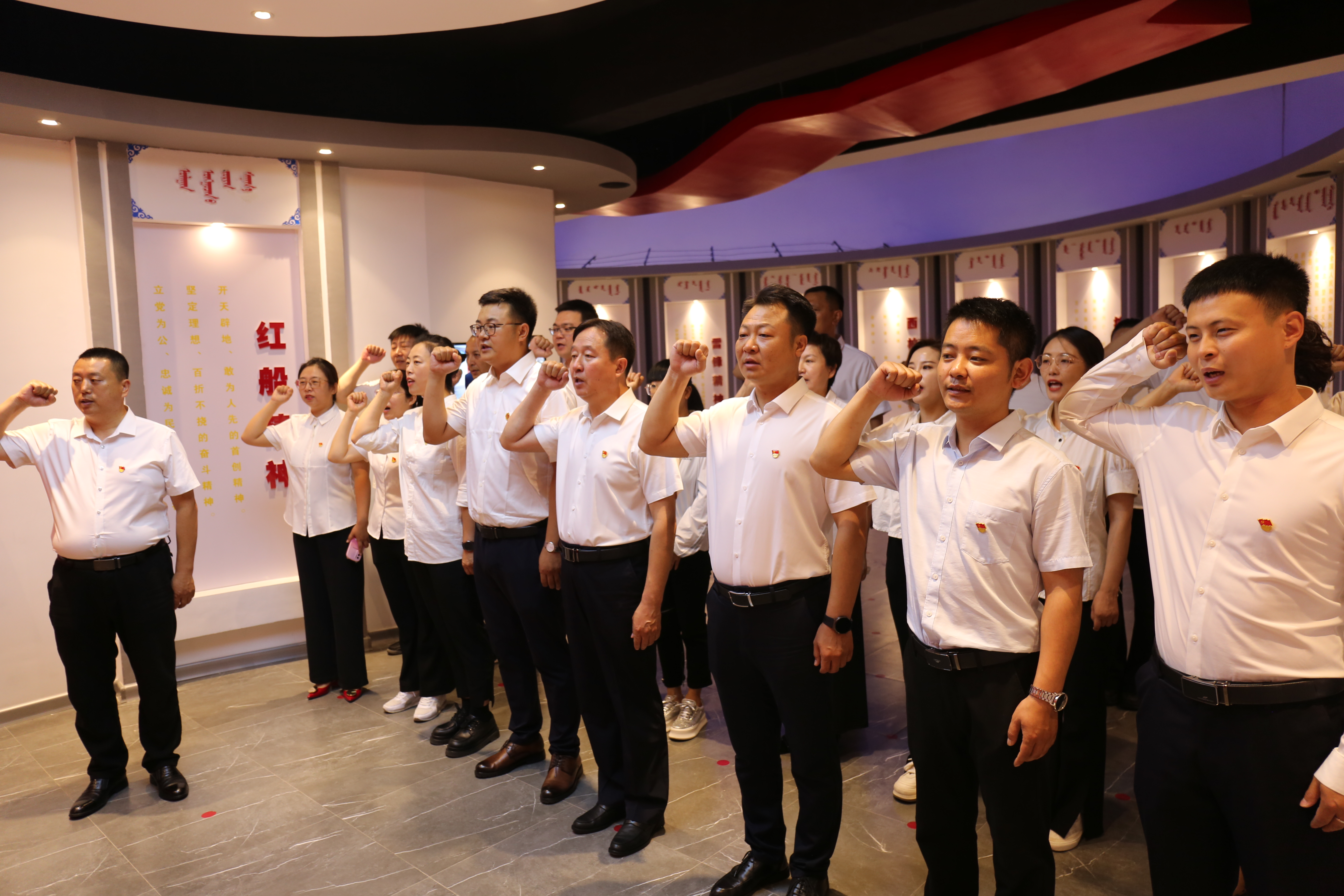 参观结束后,全体党员干部举起右拳,面对党旗,重温入党誓词。“我志愿加入中国共产党……随时准备为党和人民牺牲一切,永不叛党。”一句句铿锵有力的入党誓词,让全体党员干部重温入党时的庄严承诺,增强历史责任感、使命感,激励党员干部不忘初心、牢记使命,为党和国家的伟大事业不懈奋斗。