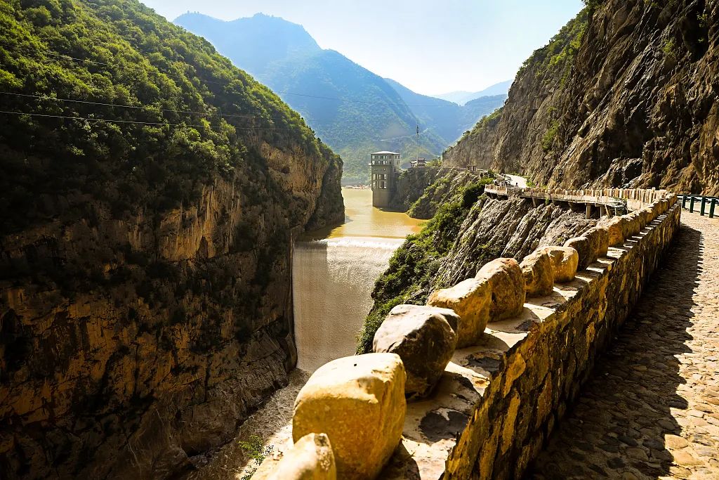 ▲引汉济渭工程主水源工程黄金峡水利枢纽。(人民日报记者 雷声 摄)