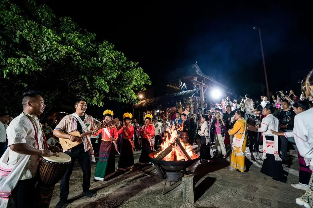 ▲9月17日,在景迈山翁基古寨,人们围着篝火跳舞庆祝。(新华社记者 胡超 摄)