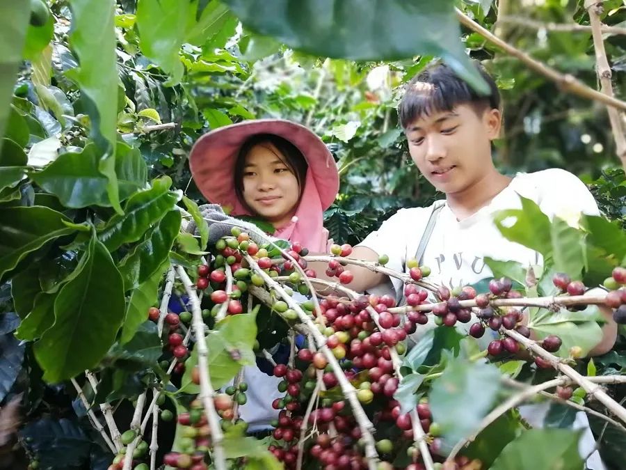▲云南省普洱市孟连傣族拉祜族佤族自治县咖农采摘咖啡鲜果。(岩三卡 摄)