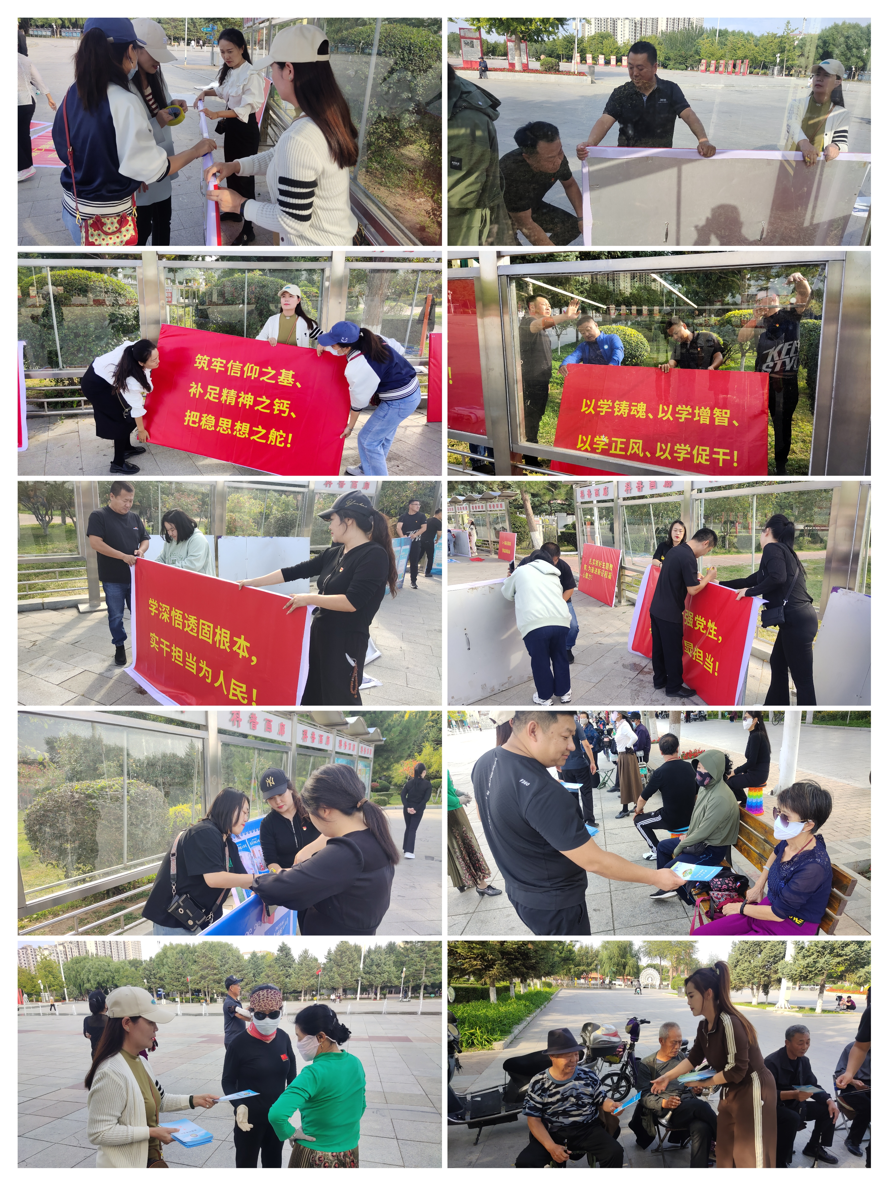 党员干部通过发放宣传单、现场讲解等形式向广大居民宣传习近平新时代中国特色社会主义思想和党的民族理论、民族政策,进一步巩固民族团结的思想根基。全体党员干部对西拉木伦公园西侧的科普画廊进行内容更换,此次更新科普画廊15块,以图文并茂、通俗易懂的形式围绕主题教育篇、2023年通辽最美科技工作者篇两个内容进行了宣传,切实加强民族团结的宣传教育,积极营造主题教育和民族团结进步的浓厚氛围。