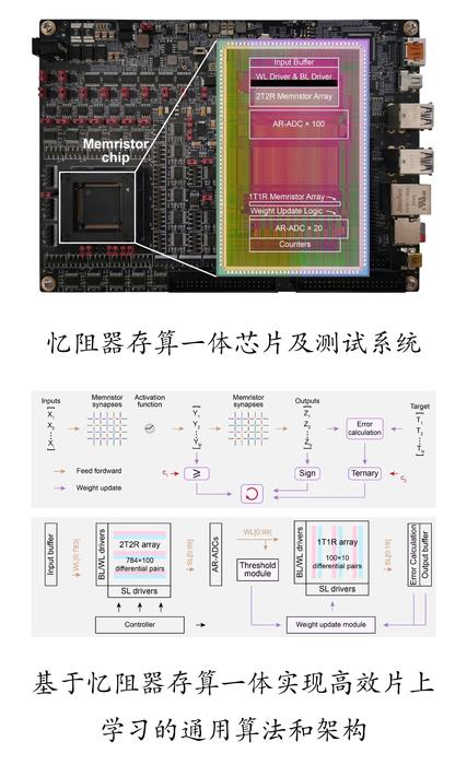 当前国际上的相关研究主要集中在忆阻器阵列层面的学习功能演示,然而实现全系统集成的、支持高效片上学习的忆阻器芯片仍面临较大挑战,至今尚未实现,主要在于传统的反向传播训练算法所要求的高精度权重更新方式与忆阻器实际特性的适配性较差。