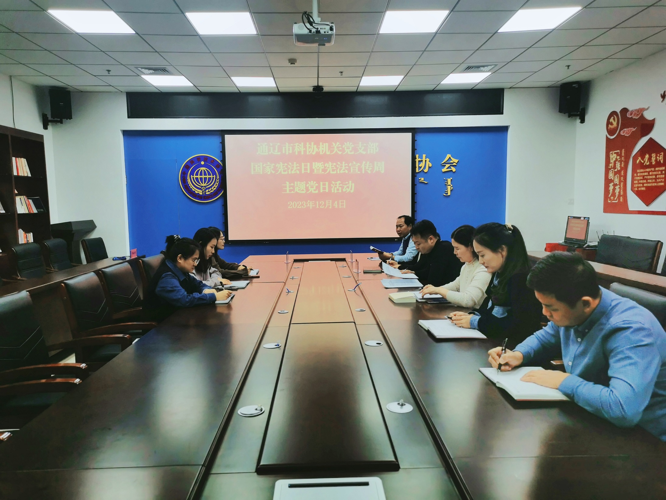 今年12月4日是第十个国家宪法日,为进一步弘扬宪法精神、树立宪法权威,提高党员干部的法治素养,营造学习宣传宪法的浓厚氛围,12月4日,通辽市科协机关党支部开展国家宪法日暨宪法宣传周主题党日活动,全体党员干部参加。