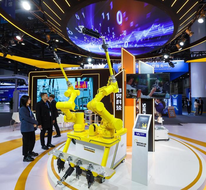 专精特新“小巨人”企业申昊科技的展台上,一台高举双臂的配网带电作业机器人吸引不少采购商上前询问,这款集成多项数智技术的新产品即将进入市场。“去年我们在首届数贸会上谈成了不少销售订单,很期待今年的表现。”企业研发中心总监杨子赫说。