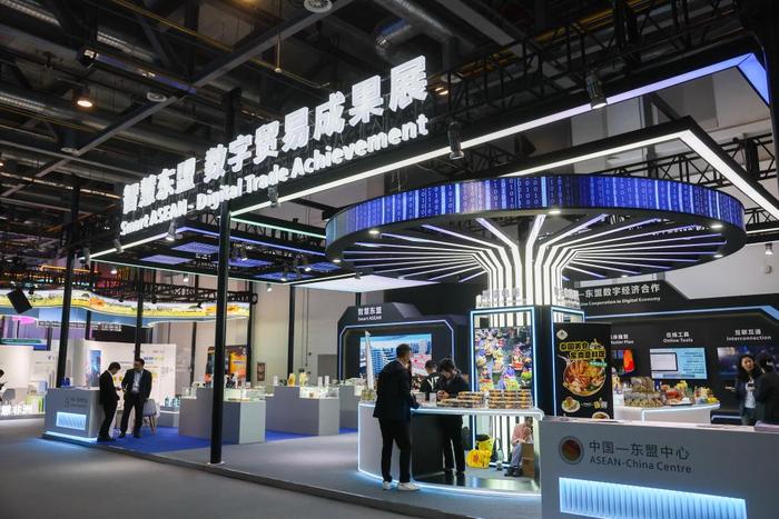 第二届全球数字贸易博览会上的智慧东盟数字贸易成果展。新华社记者徐昱 摄