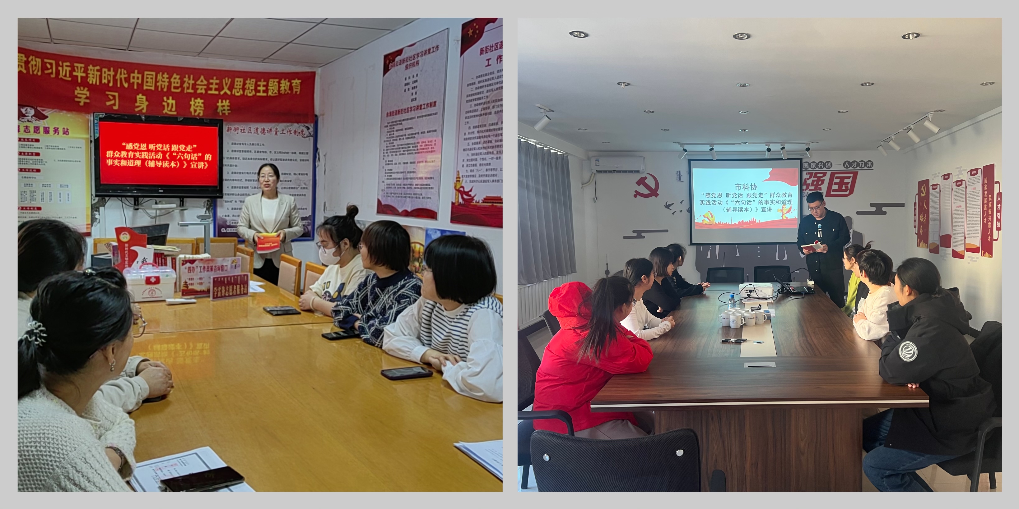 丰富载体集中宣讲。为不断提升社区党员干部的政治认识水平,铸牢忠诚干净、担当作为的思想意识,市直科协系统部分党员干部依托“双报到双服务”活动载体,到所在社区开展“‘六句话’的事实和道理”专题宣讲会,为社区党员干部逐句讲解“六句话”的事实和道理的深刻涵义,进一步引导社区党员干部铭记“六句话”的事实和道理,着力增强向辖区居民群众宣传、宣讲“六句话”的事实和道理的意识,立足工作岗位,自觉对标先进,积极引导辖区居民感党恩、听党话、跟党走。