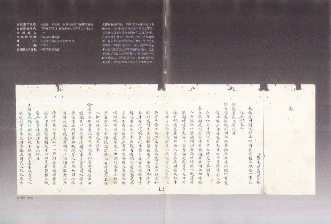 ▲林则徐、邓廷桢、怡良合奏虎门销烟完竣折(局部)。(图片来源:国家档案局《中国档案文献遗产名录》)