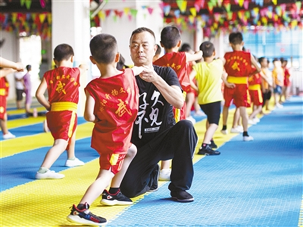 ▲湖南省怀化市麻阳苗族自治县有着悠久的习武传统。当地不少学生在假期参加武术兴趣班,强身健体的同时丰富假期生活。新华社记者 陈思汗摄