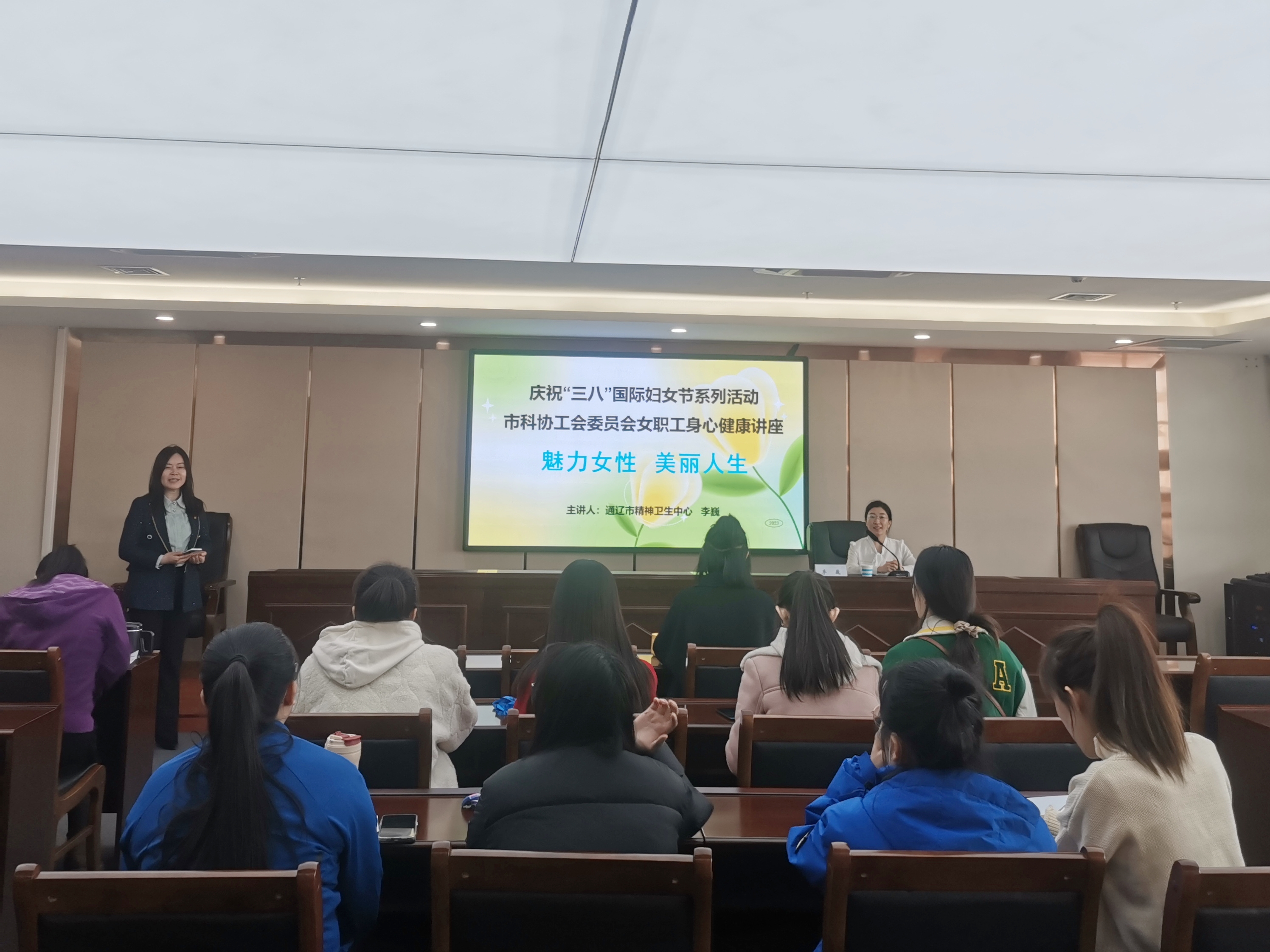 培育健康心态,拥抱美好生活。为切实关爱女职工身心健康,疏导女性心理压力,正确看待心理健康疾病,结合“三八”国际妇女节庆祝活动,3月13日,市科协工会女职工委员会特邀请通辽市精神卫生中心心理治疗主任李巍授课,市直科协系统全体女职工参加。