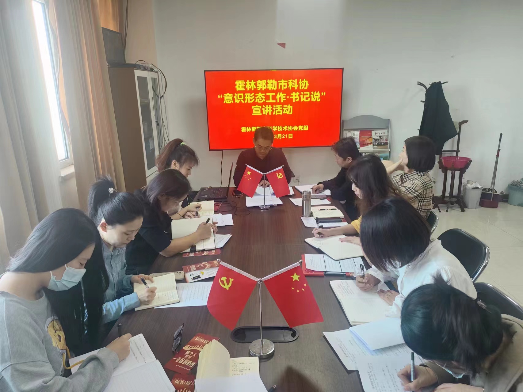 为全面抓好意识形态工作,守好科普工作领域意识形态主阵地,打好意识形态主动战,3月21日,霍市科协开展“意识形态工作·书记说”活动,机关全体职工参加。