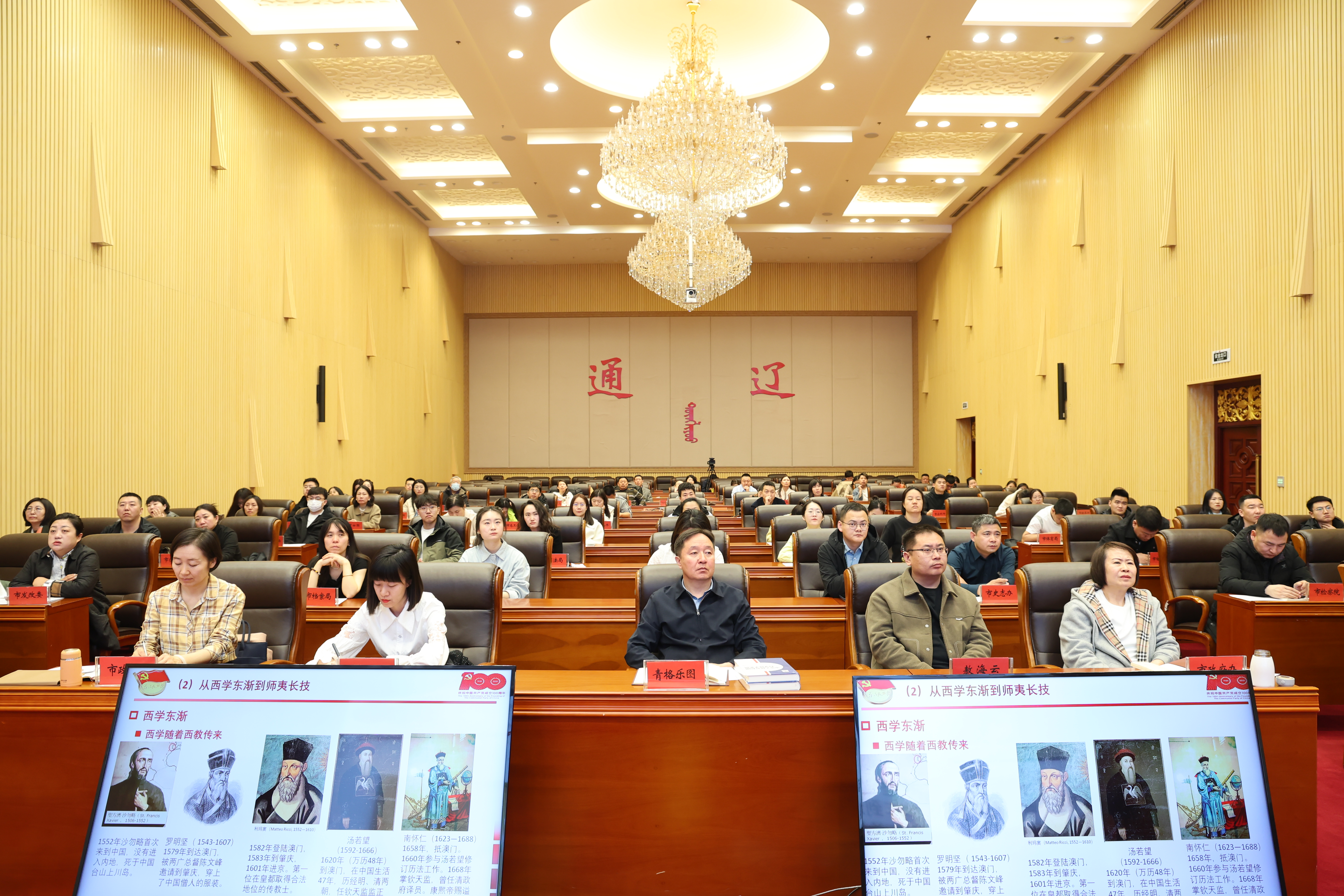 3月26日上午,“感党恩、听党话、跟党走”群众教育实践活动主题宣讲暨2024年第一期“科学讲坛”在市行政中心举行。本次讲坛邀请中国科学家精神宣讲团成员、中国科学院党领导科技事业发展史宣讲团成员,中国科学院自然科学史研究所副研究员,中国近现代科技史研究室副主任、支部书记王公博士作专题讲座。市科协党组书记、主席青格乐图主持。
