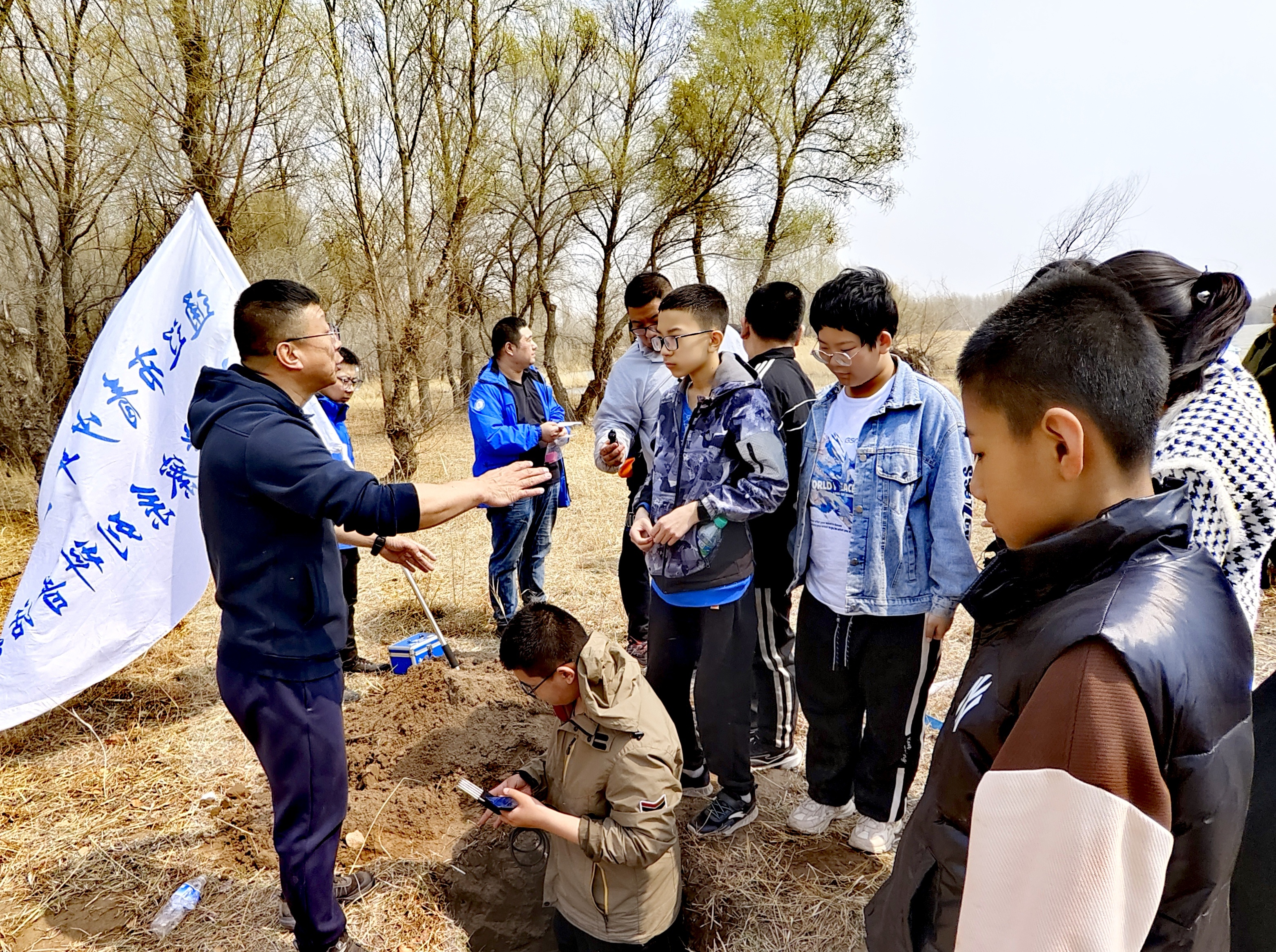 通辽市生物多样性保护协会专家委员会主任董永义教授为营员们讲解科普湿地知识,并针对春季特点重点讲授了湿地基质条件和保护、湿地春季地被物分析。