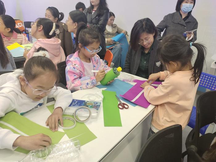 在制作水火箭的过程中,大家纷纷化身“小小航天工程师”,利用水瓶和彩纸等这些材料,在润强老师的指导下,做出了“一级水火箭”。这堂航天科学课不仅让同学们明白了火箭的发射原理,也让他们了解了航天科技工作者为中国航天事业所付出的艰辛与努力,从而激发青少年对于航天科学的兴趣与热情,点亮青少年的航天梦想。