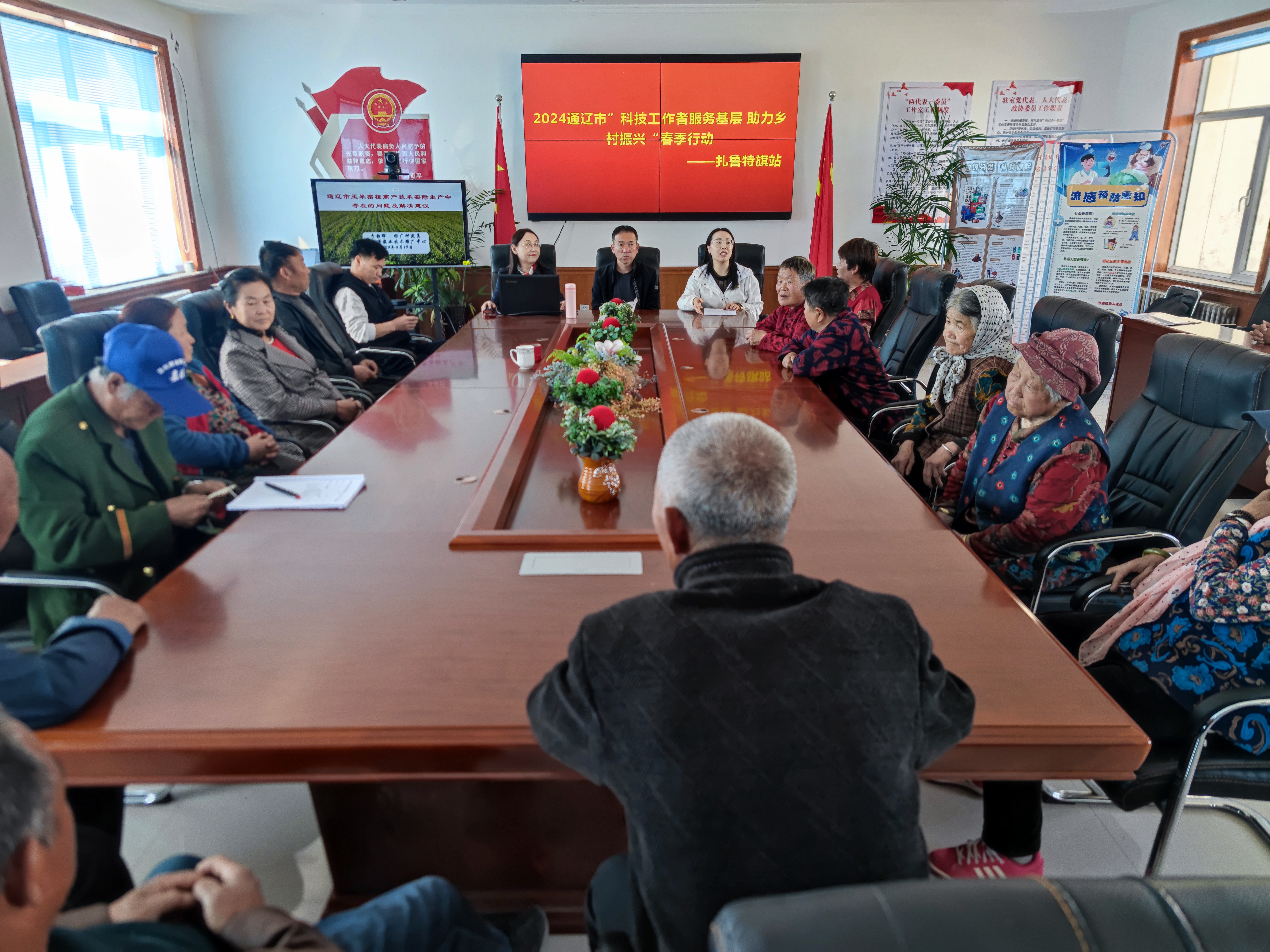 为进一步提升全民科学素质,提高玉米种植效益,在春耕备耕关键时期打好基础,助力乡村振兴,4月19日上午,扎旗科协携手通辽市农机推广中心于静辉老师和科技志愿者一行乘坐满载科普图书和科普宣传品的科普大篷车来到鲁北镇义和碑村,依托义和碑农村科普学校,开展“科技工作者服务基层 助力乡村振兴”春季行动,为农户送去玉米种植技术培训,促进玉米增产增收,镇分管领导、村两委班子成员、种植户共计40余人次参加。