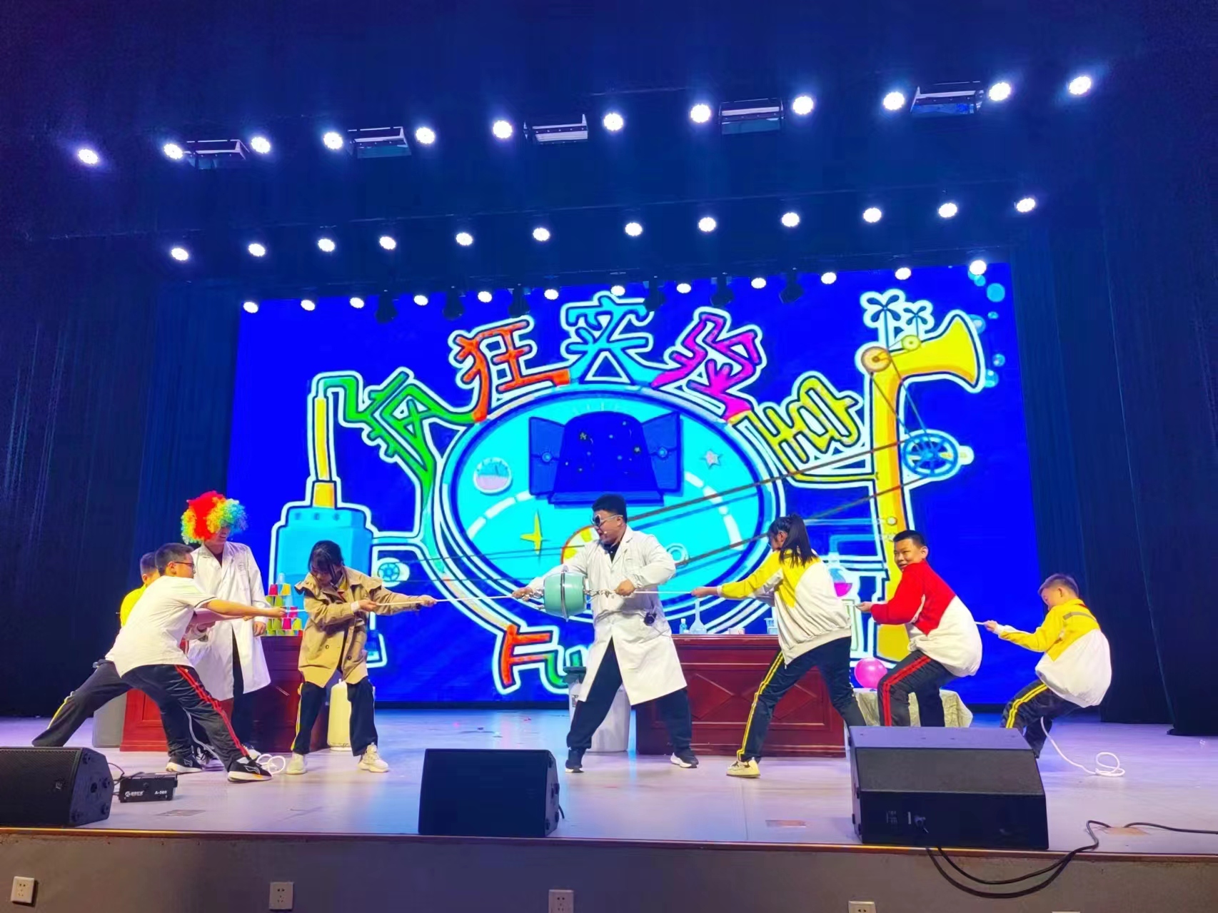 市科技馆科学表演秀走进了通辽新城第一中学,科技辅导员化身“蓬头”博士、“垢面”博士为同学们带来了精彩的科学表演秀--《疯狂实验室》,为同学们表演了意念气球、液氮大爆炸、马德堡半球、大象牙膏、空气炮等科学实验,活动现场还邀请了同学们参与实验,并为他们讲解了科学原理和生活中的应用。在科学表演秀的魔法课堂里,科技辅导员神奇的科学实验、生动的表演与同学们的积极配合使现场氛围活泼又有趣,同学们在参与中获得了科学知识。