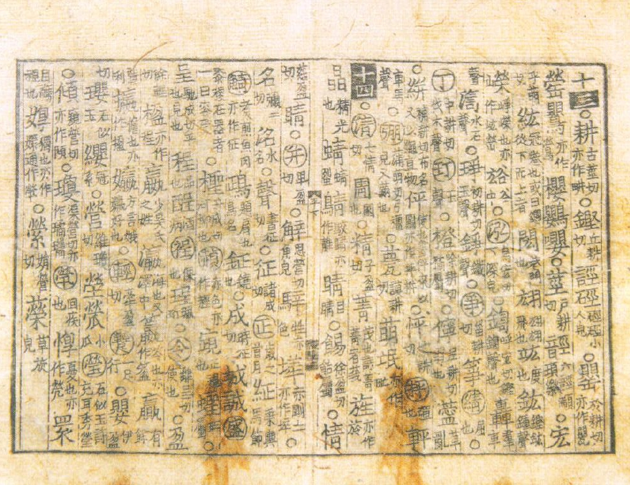 据史籍所载,自熙宁四年(1071年)起,宋廷发生了一系列政治变革,导致科举制度随之变化,《礼部韵略》也遭遇了废置—启用—再废置的过程。靖康元年(1126年)虽恢复了诗赋科考,但翌年金人便攻破汴梁,北宋灭亡。《礼部韵略》自其成书时起,先后行用不到三十年,这就为后世专家学者考察此书的版刻,锚定了可资稽考的时间范围。