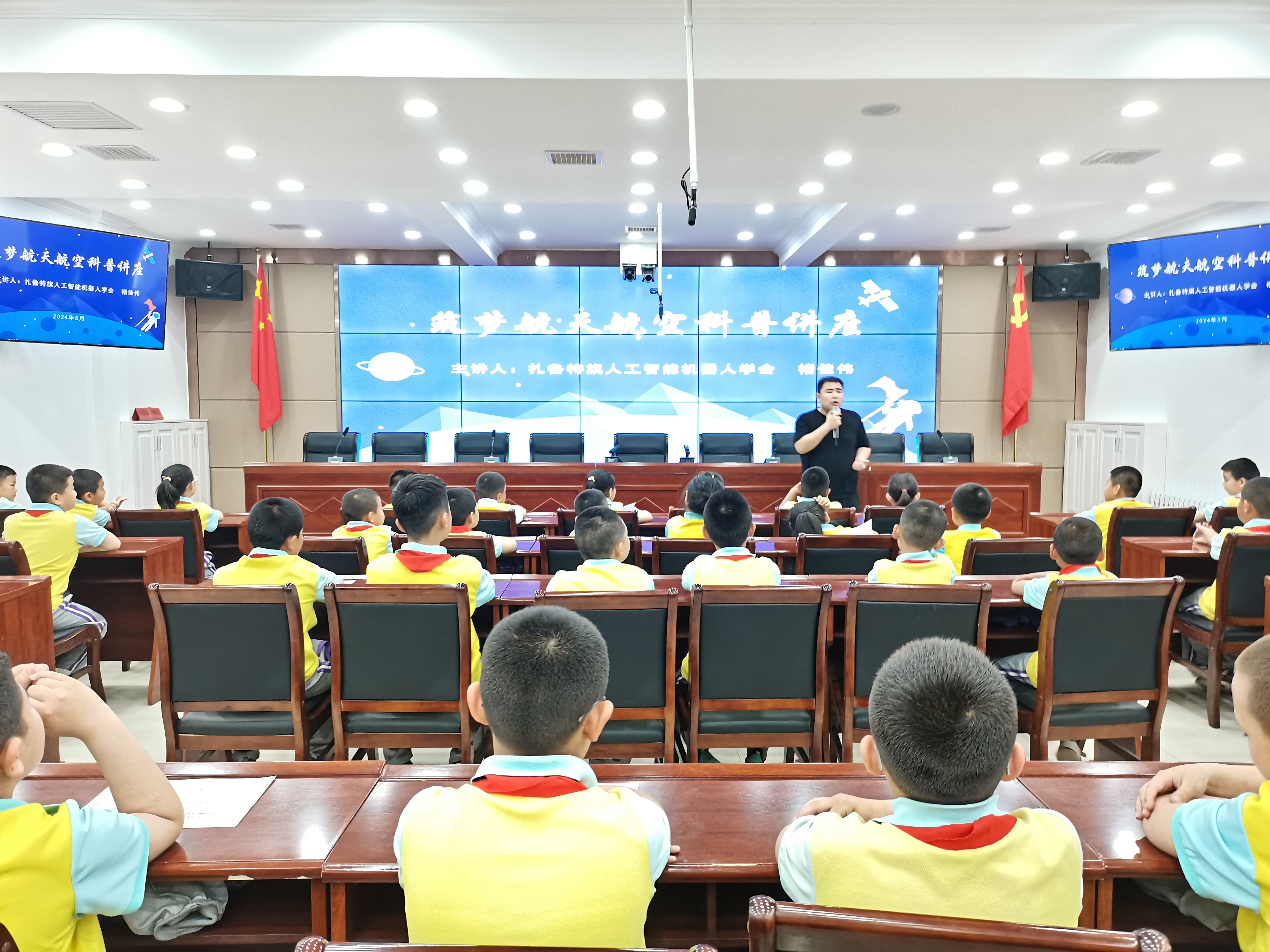 在颁奖仪式结束后,人工智能机器人学会理事长褚佳伟又给学生们上了一堂生动的航天科技科普讲座,让他们更多的了解科技带给我们生活的力量。