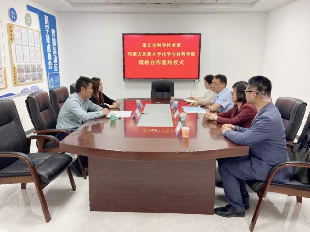 5月17日,通辽市科学技术馆与内蒙古民族大学化学与材料学院举行了馆校合作签约仪式。内蒙古民族大学化学与材料学院院长刘景海、通辽市科学技术馆副馆长谷晓明出席签约仪式。