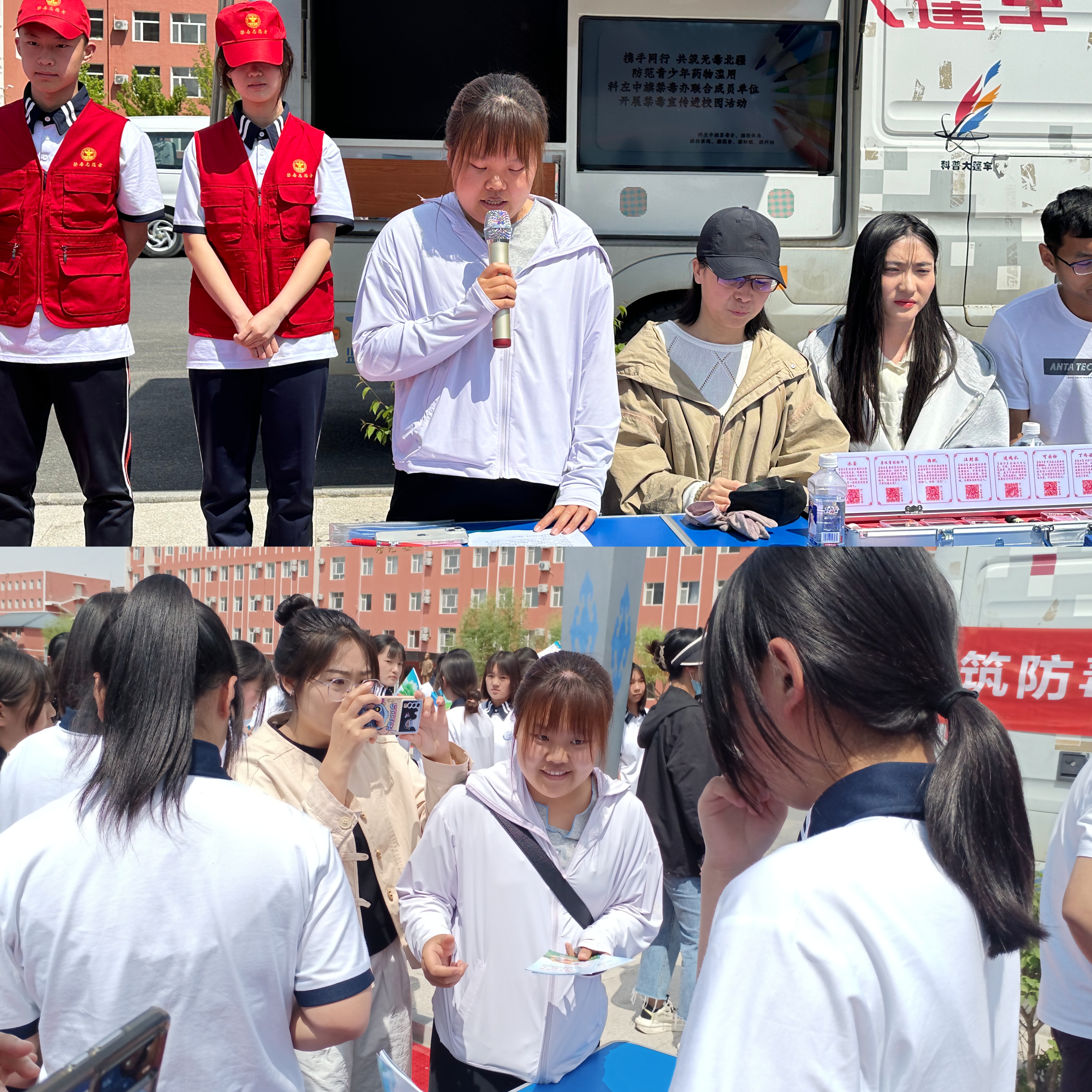 活动中,科协工作人员与禁毒办等工作人员通过发放禁毒宣传折页,向在校师生详细讲解了常见的麻醉药品和精神药品的种类。通过案例分析,提醒学生提高警惕,远离毒品,教育青少年学生要远离不良嗜好,号召广大青少年学生保持积极的人生态度和健康的生活方式,构筑起抵御毒品的坚固防线,从源头上杜绝毒品的侵害。