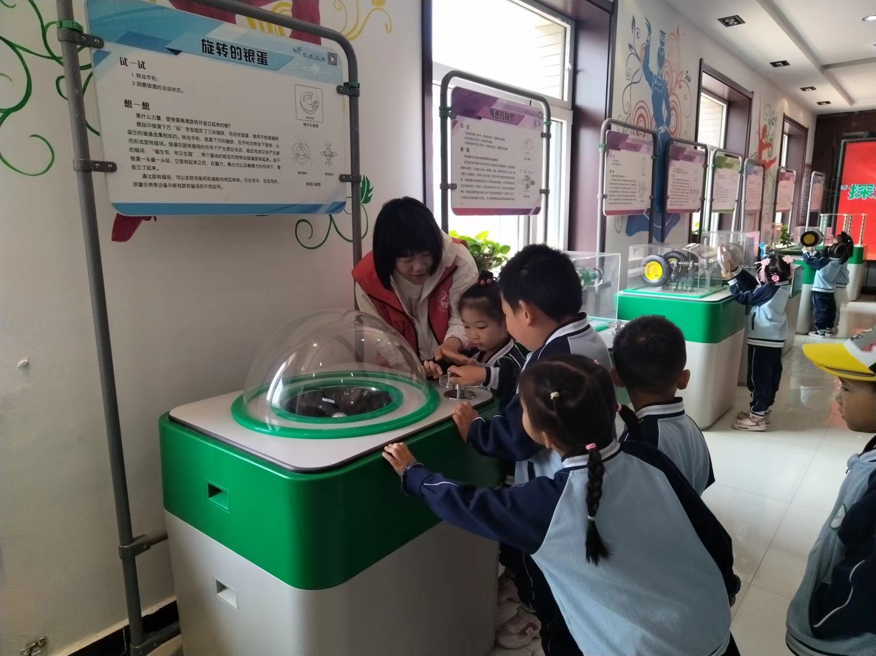活动中,科技志愿者带领孩子们依次体验中国流动科技馆手续电池、旋转的银弹、锥体上滚、魔镜等展品,这些科学体验设施受到了孩子们的喜爱,同时,科技志愿者用生动有趣、深入浅出语言为小朋友们讲解,孩子们认真听讲,在轻松愉悦的氛围中获得了科学知识。30余位小朋友参加了此次活动。