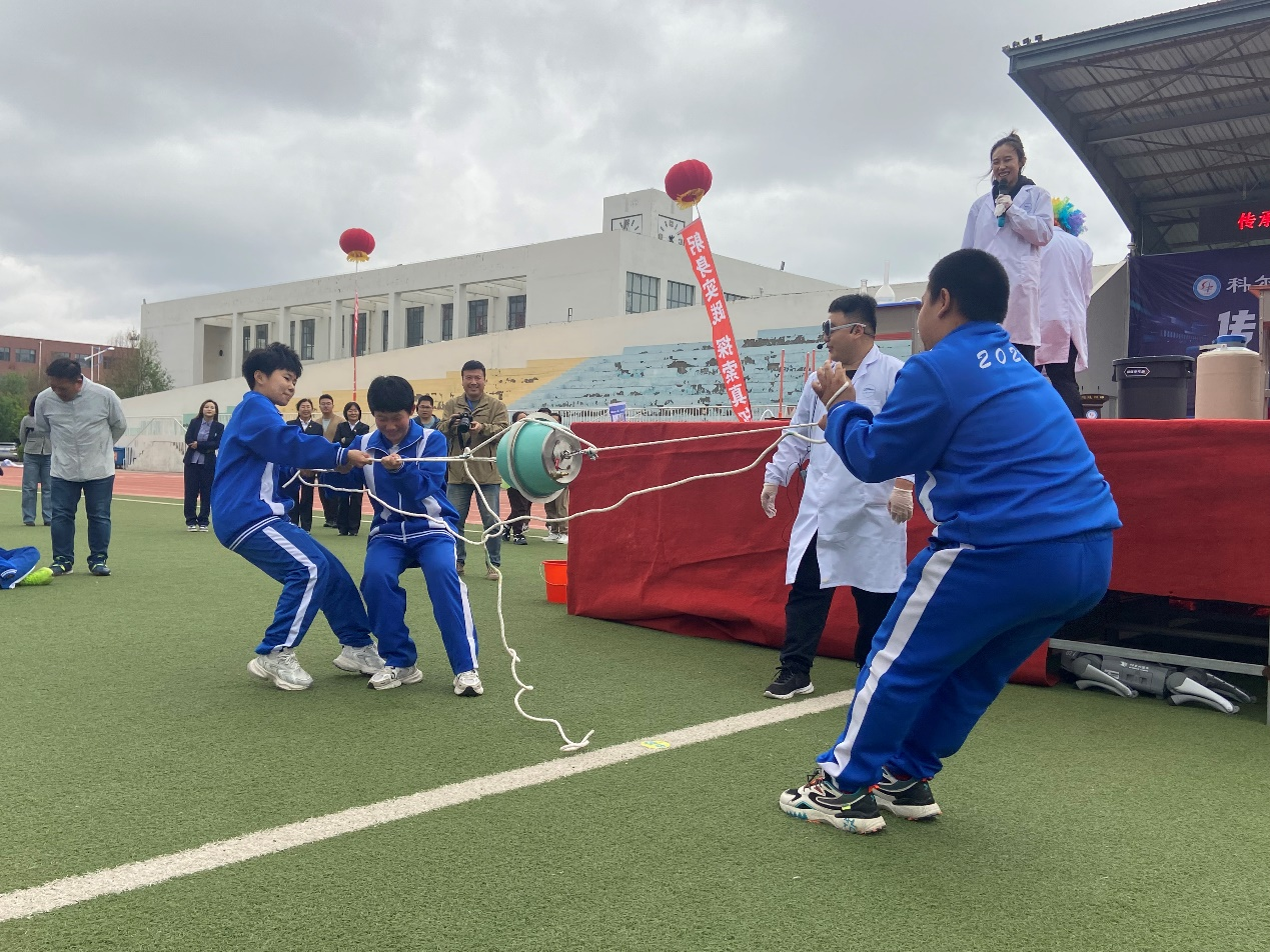 在活动过程中,科技馆的科技辅导员以独特幽默的科普方式,为学生们生动演绎了一场科学表演秀——《疯狂实验室》,其中包括能用意念控制物体的“意念气球”、展示大气压强的经典实验“马德堡半球”、发射强烈气流的“空气炮”、壮观的“气体喷发”和“液氮爆炸”实验等,学生们通过观看和参与互动感受科学的魅力。四足机器人的表演更是让学生们兴奋不已,科技辅导员通过无线遥控,引导机器人完成一系列高难度动作,展现了人工智能与机器人技术的最新成果。此外,科技馆的科普大篷车满载着科普展品也走进了通辽四中的校园,将科普教育资源直接带到学生们身边,提供了直观的体验学习机会,让学生们在体验中学习科学知识,增强学习兴趣。