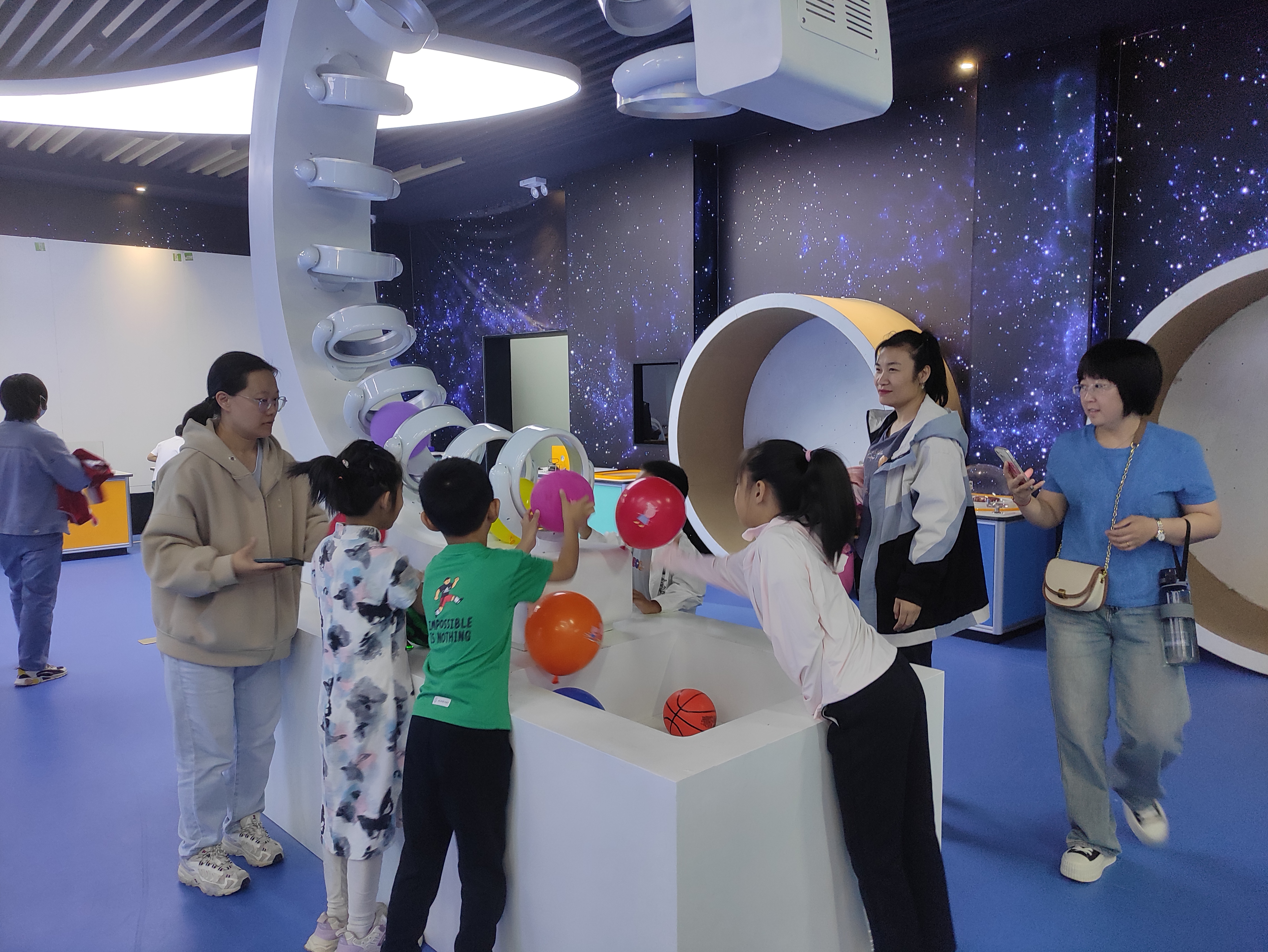 在科技馆工作人员的带领下,小朋友们参观了奈曼旗科技馆航空航天展厅,体验了天宫二号高仿真模型中的微重力科学手套实验以及华夏神州VR体验舱等航空科普系列展品。在基础科普展品区,他们亲手操作了各种声、光、电等科学原理的科技设备,锻炼了动手能力,让小朋友们近距离感受到了科技的魅力和神奇,帮助他们更好地理解科技在生活中的应用。