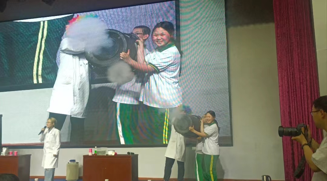 在表演秀中,同学们目睹了化学反应的惊人力量。催化剂在“大象牙膏”实验中扮演着神奇的角色,瞬间点燃了反应,泡沫如火山喷发般涌出。蘑菇云升腾、气球缩小的奇特现象则带领同学们探索了液氮-196℃的低温世界。看似平凡的面粉,在“粉尘爆炸”实验中展现出惊人的威力,同学们理解了粉尘爆炸的原理以及预防的重要性,在感叹科学奥秘的同时,也更加重视安全意识。