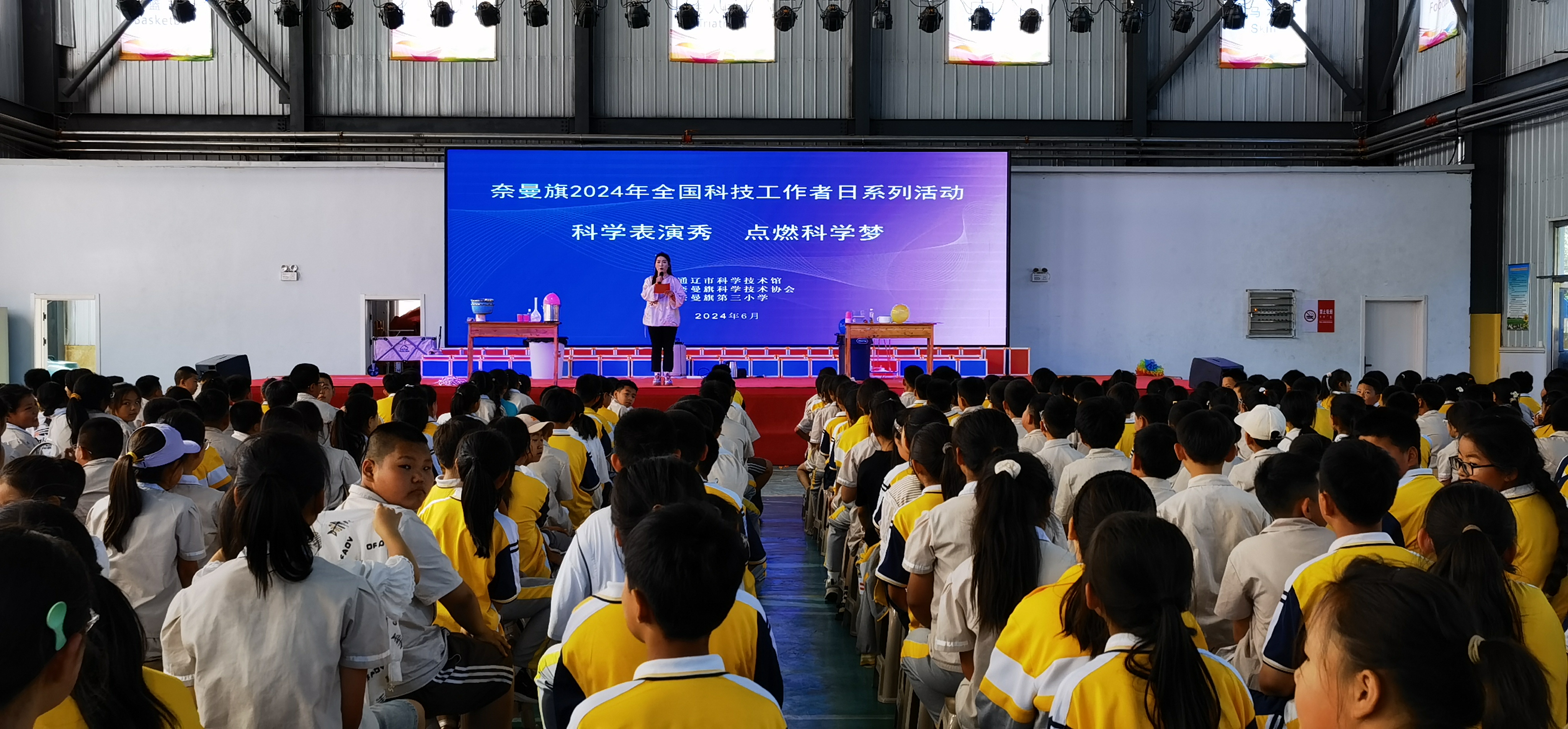 6月14日,在“全国科技工作者日”活动期间,由通辽市科技馆、奈曼旗科协联合开展的奈曼旗2024年“全国科技工作者日”系列活动之“科学表演秀 点燃科学梦”进校园活动,走进了奈曼旗第三小学、第六中学,为学生们带来一场视觉与知识的双重盛宴,更在孩子们心中播下了科学探索的种子。