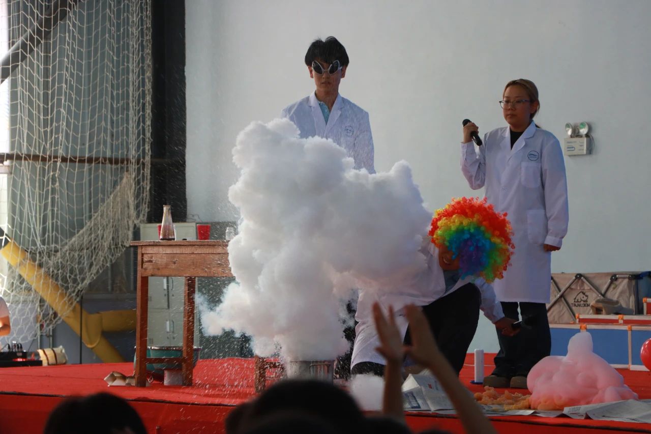 活动现场,科技辅导员们化身为科学博士,为学生们展示了“意念气球、液氮大爆炸、马德堡半球、大象牙膏”等一系列充满奇幻色彩的科学表演。这些实验涵盖了声学、光学、热学、力学等多个领域,每一个实验都充满了趣味性和探索性。学生们怀着对科学的好奇心,全神贯注地观看每一个神奇的变化过程,不时发出惊叹和掌声。活动还鼓励学生们亲身参与,与科技辅导员们共同合作完成实验,这种互动式的科普方式让学生们在动手实践中感受到了科学的魅力。