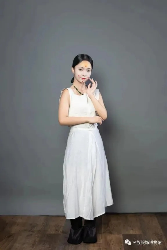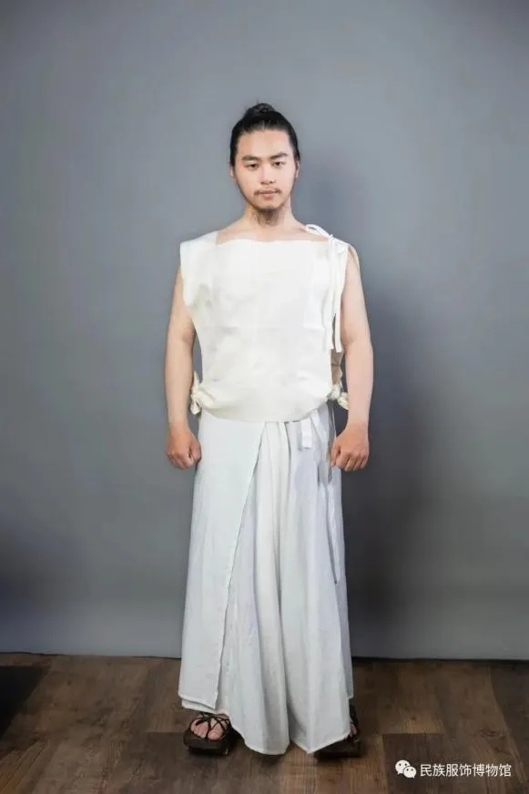 古代这种寓意爱情的服饰到底是什么样子呢?在甘肃嘉峪关魏晋墓砖壁画的《采桑图》中就有穿着裲裆的孩童。壁画砖上的孩童穿着清凉,只穿了裲裆和一条裙子,连鞋子都没有穿,而旁边的长者层层叠叠地穿了好几层服饰。裲裆的形状非常简单,是两片前后为连接在一起的正方形,衣服的长度到腰,边缘处有宽边,腋下用带子连接并固定。北京服装学院教授蒋玉秋开设的“中国古代服饰复原研究与实践”课上,对北魏司马金龙夫妇穿着进行了复原,我们可以看见裲裆实际的样子。