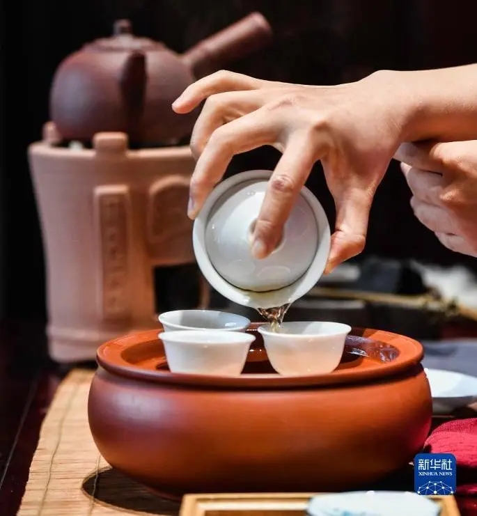 ▲茶艺师演示“工夫茶二十一式”冲泡技艺(图片来源:新华网)