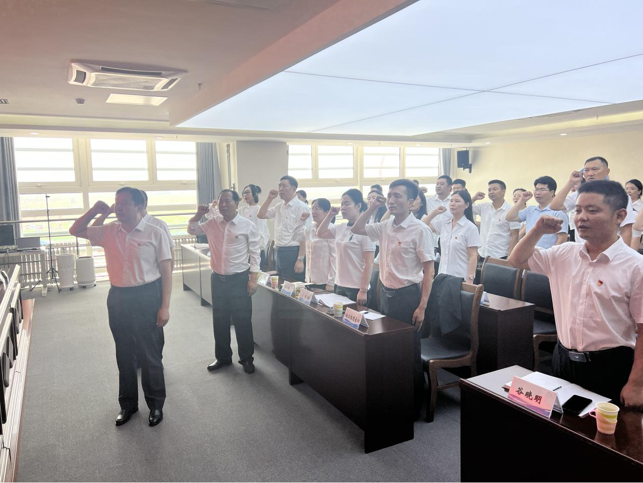7月1日上午,市科协党组书记、主席、党总支部书记青格乐图同志作为领誓人,带领市直科协系统全体党员、干部面向党旗郑重宣誓,重温入党誓词,“我志愿加入中国共产党……随时准备为党和人民牺牲一切,永不叛党。”一句句铿锵有力的入党誓词,让市直科协全体党员、干部重温入党时的庄严承诺,增强历史责任感、使命感,激励党员、干部不忘初心、牢记使命,为党和国家的伟大事业不懈奋斗。