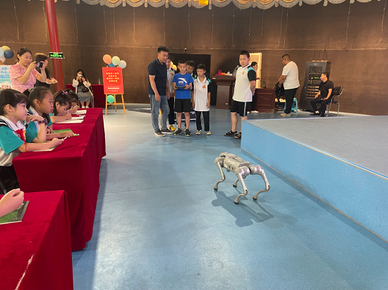 在互动环节中, 为了让孩子们对竞技机器人有更直观地接触,通嘎力噶老师邀请孩子们上台体验竞技机器人,手把手教会操作技巧,让孩子们拿着遥控器指挥着各自的机器人互相战斗。活动最后,科技馆工作人员还给孩子们展示了四足机器狗。