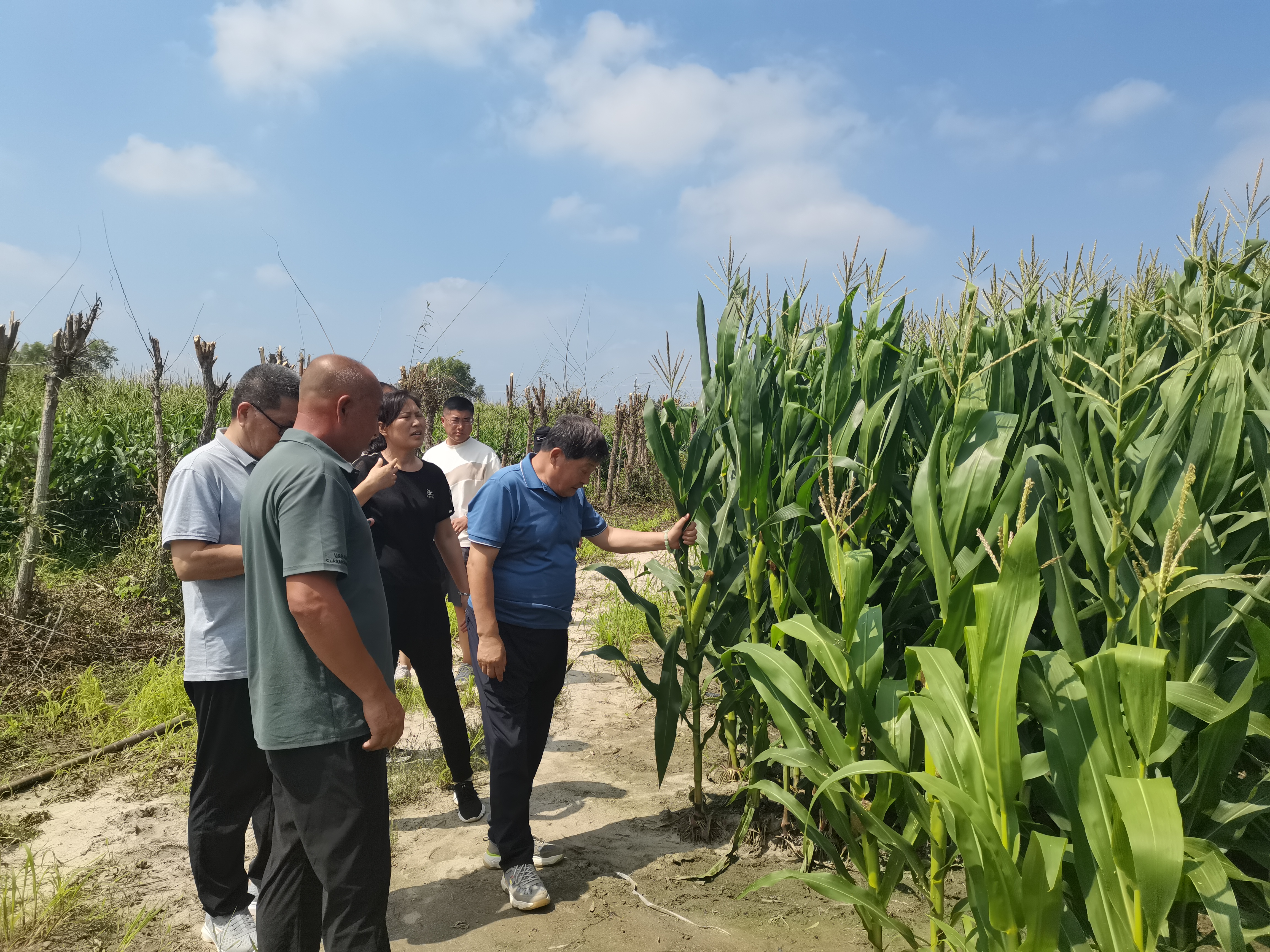 在协日乐阿吉日嘎嘎查,调研组走访调研了林果科技园和高产玉米试验田。吉力特进行现场教学,就现阶段果树管理提出指导建议。
