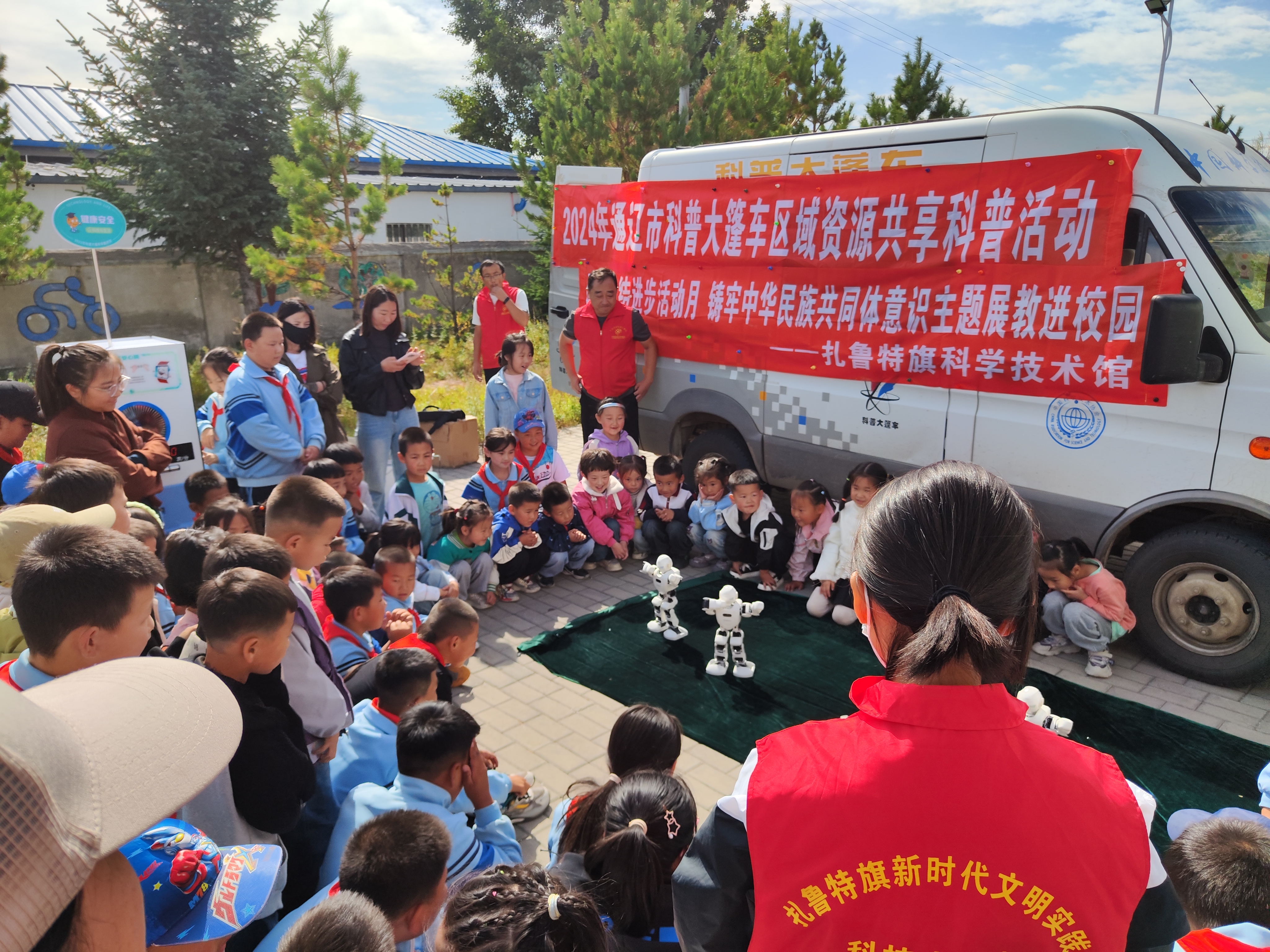 为全面贯彻铸牢中华民族共同体意识这条主线,在扎鲁特旗科协的统一安排部署下,扎鲁特旗科技馆积极贯彻“通辽市全民科技节”活动要求,在“民族团结进步活动月”和“全国科普日”期间,充分发挥自身科普阵地作用,持续深入各偏远少数民族地区学校开展科技巡展工作,积极推进“馆校”合作,协同开展青少年科技教育。