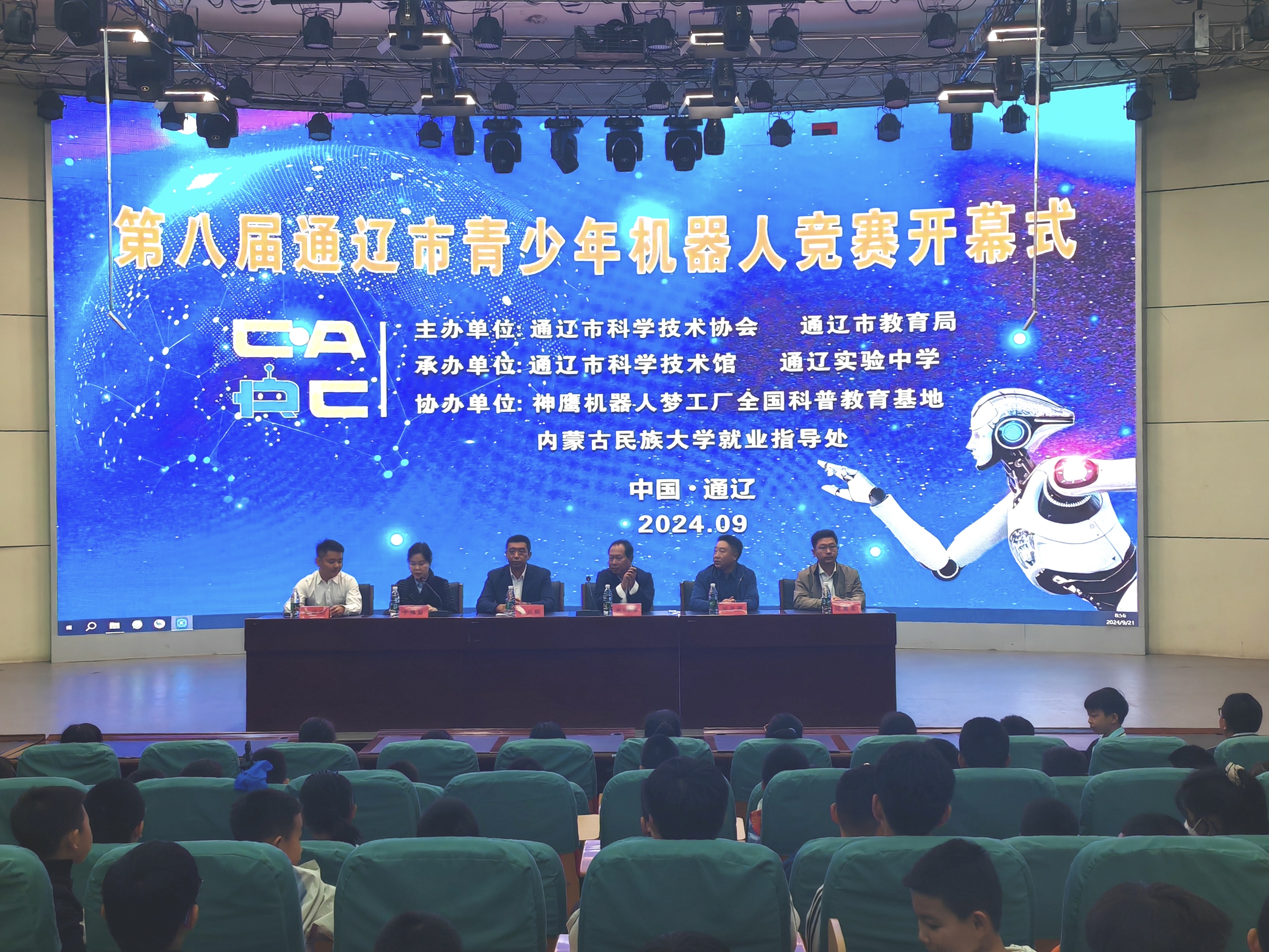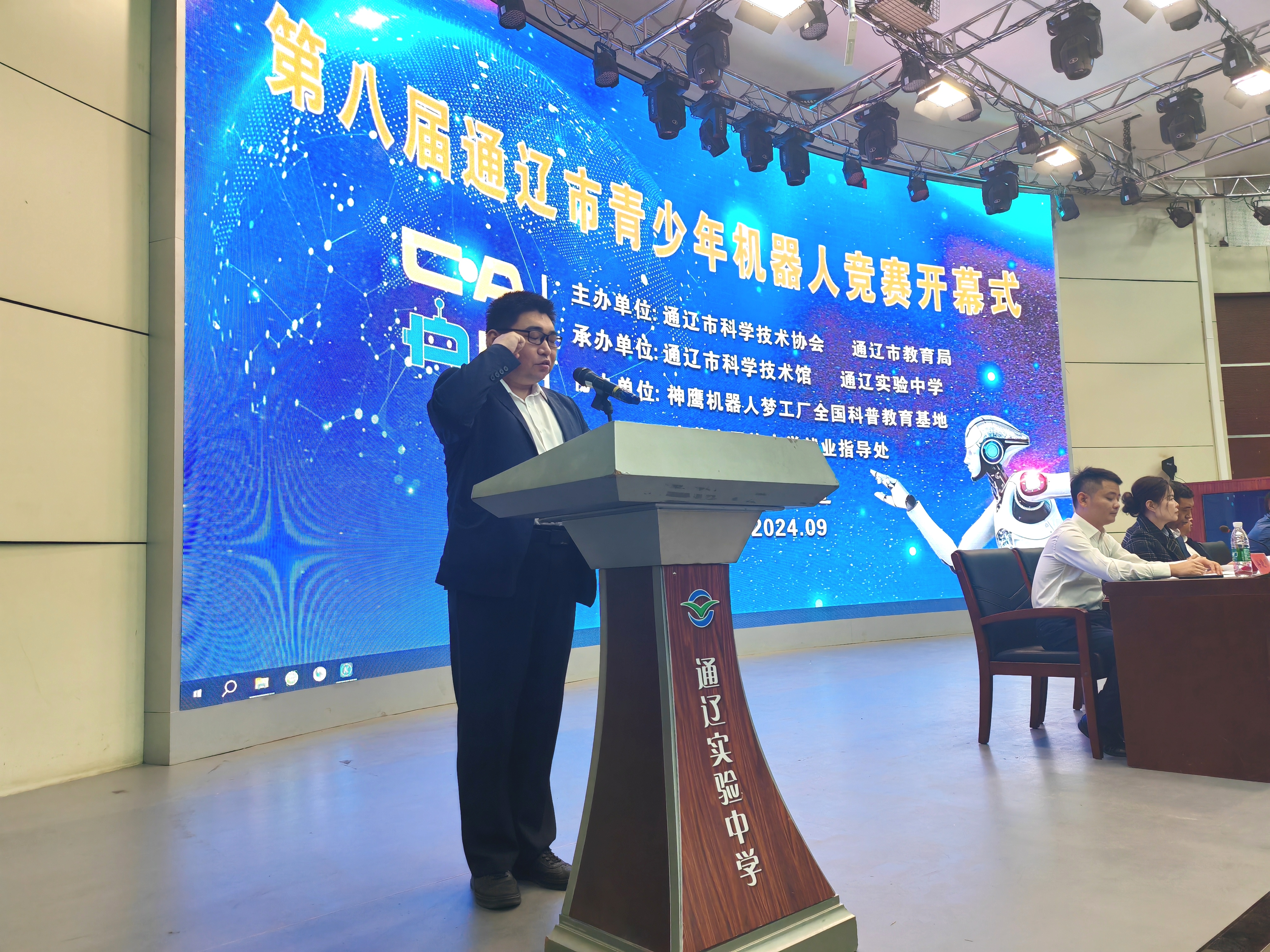 为深入贯彻党的二十大精神和习近平总书记关于教育、科技、人才的重要论述,促进全市中小学生创新精神和实践能力培养,推动优质科普资源助力“双减”工作落地实施,9月21-22日,围绕主题为“提升全民科学素质,协力建设科技强国”的2024年全市首届全民科技节活动,由通辽市科协、通辽市教育局主办,通辽市科技馆、通辽实验中学承办,神鹰机器人梦工厂全国科普教育基地、内蒙古民族大学就业指导处协办的第八届通辽市青少年机器人竞赛在通辽实验中学成功举办。通辽市科协党组成员、副主席耐日勒图,通辽市教育局党组成员、副局长赵兴联,通辽实验中学党委委员、副校长刘凤辉,通辽市科技馆副馆长谷晓明、神鹰机器人梦工厂全国科普教育基地负责人边慧龙出席开幕式。通辽市科技馆馆长于伟丽主持开幕式。