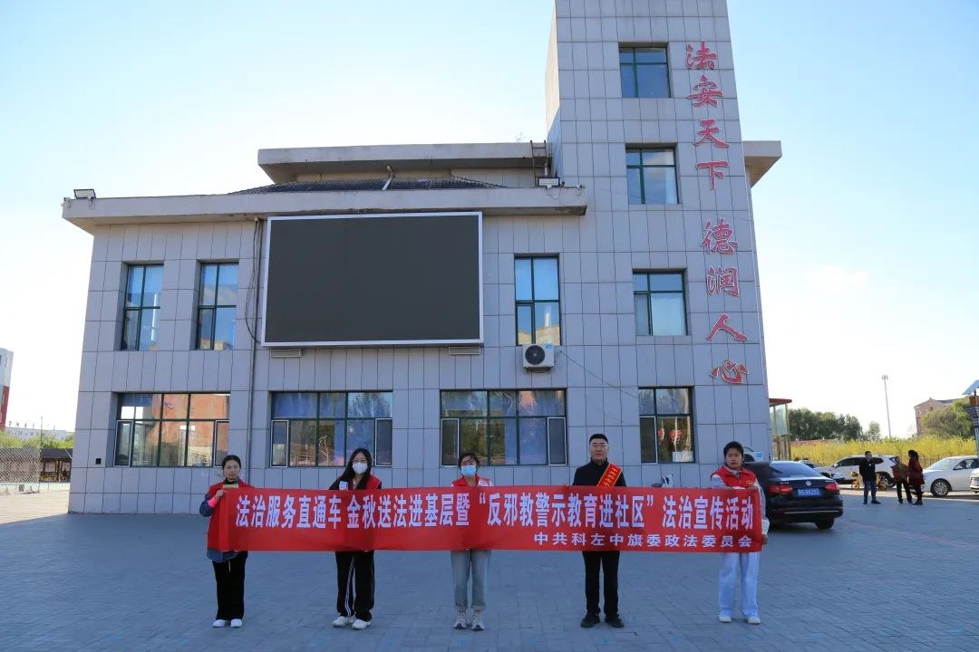 为不断增强人民群众的法律意识和法治观念,进一步做好反邪教警示教育工作,丰富“全国科普日”活动内容。9月25日,科左中旗委政法委联合旗公安局、旗科协、旗法学会、保康街道中心社区,开展了“法治服务直通车, 金秋送法进基层”暨“反邪教警示教育进社区”法治宣传活动。