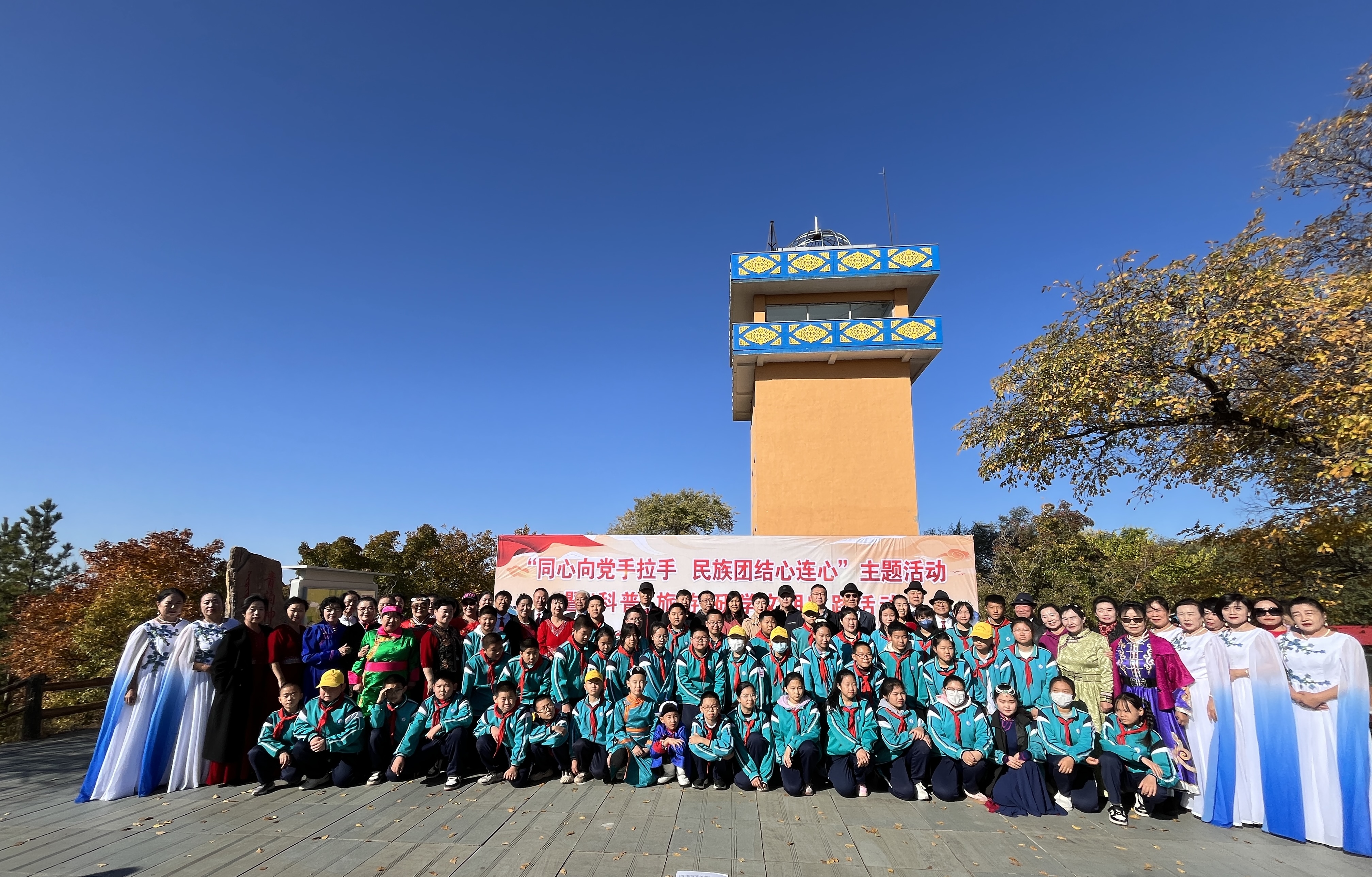 “读万卷书,行万里路”,研学是最美的相遇。为进一步铸牢中华民族共同体意识,拓展青少年的视野,体验集体活动的乐趣,10月12日,由科左后旗科协、旗新时代文明实践服务中心、旗教体局、大青沟管理局主办,旗老年大学、旗老科协协办的“同心向党手拉手,民族团结心连心”主题活动暨“科普+旅游”研学文明实践活动在大青沟旅游景区开展。旗科协党组书记、主席朱丽华、旗新时代文明实践服务中心主任白灵、旗教体局副局长张志强、旗大青沟管理局副局长李雪峰等各单位负责人以及旗实验小学学生、老年大学的学员等百余人参加。