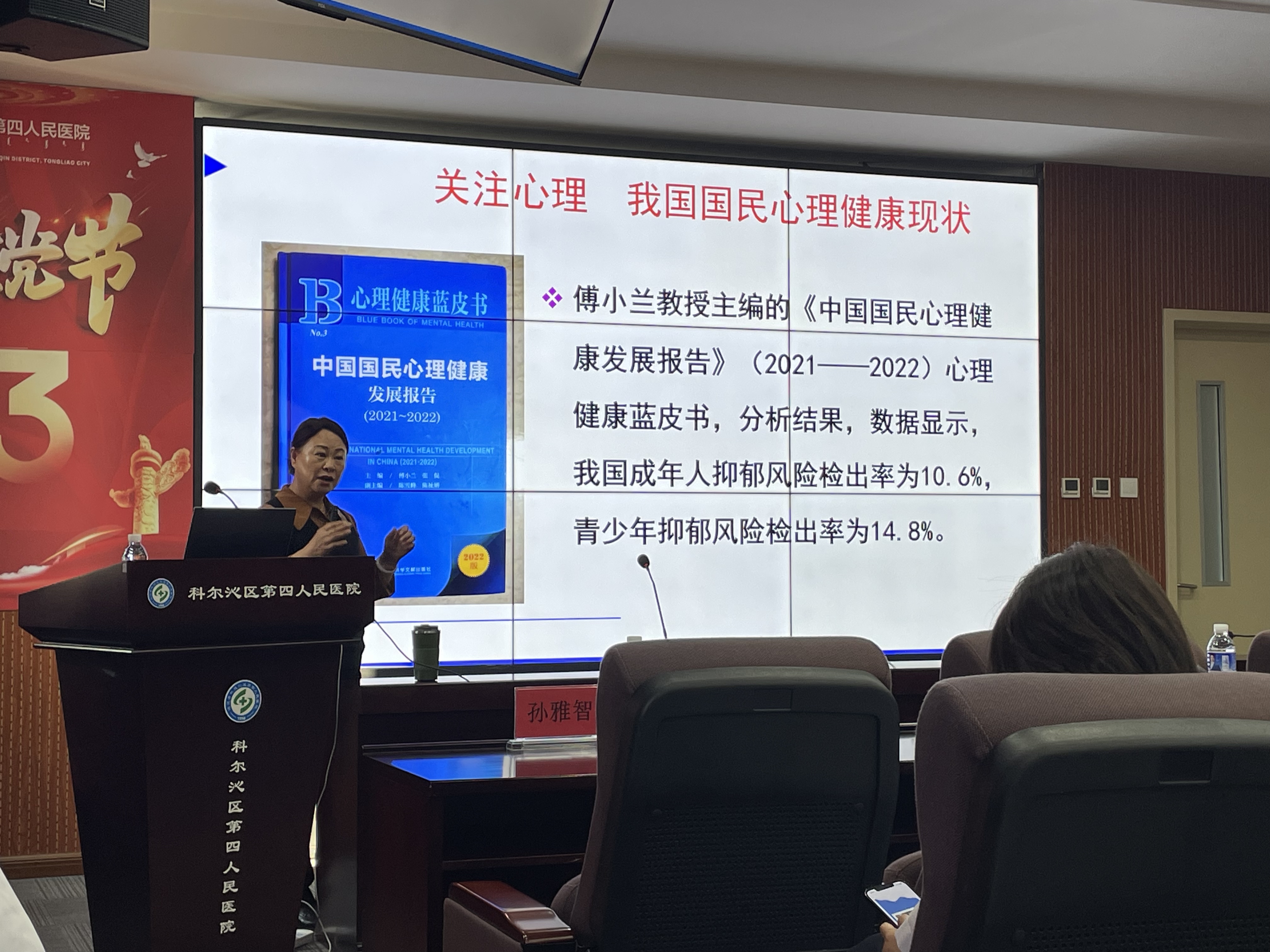 为缓解医务职工和青少年心理压力,提高心理健康意识和心理调适能力,10月23日,通辽市科协邀请“雅智心理创伤疗法”创始人、国际认证催眠治疗师、国家二级心理咨询师孙雅智专家和教育部中小学心理健康教育体系化研究课题组特聘专家、润心生涯研究院院长、润心心理创始人周明专家到科尔沁区第四人民医院和科尔沁区实验小学开展“润心北疆”心理健康科普讲座,相关领导、医技人员、学生及教师近1000人参加此次讲座。