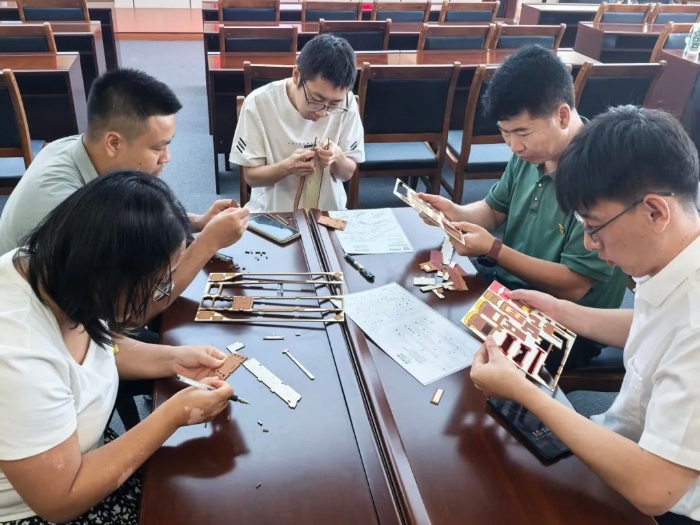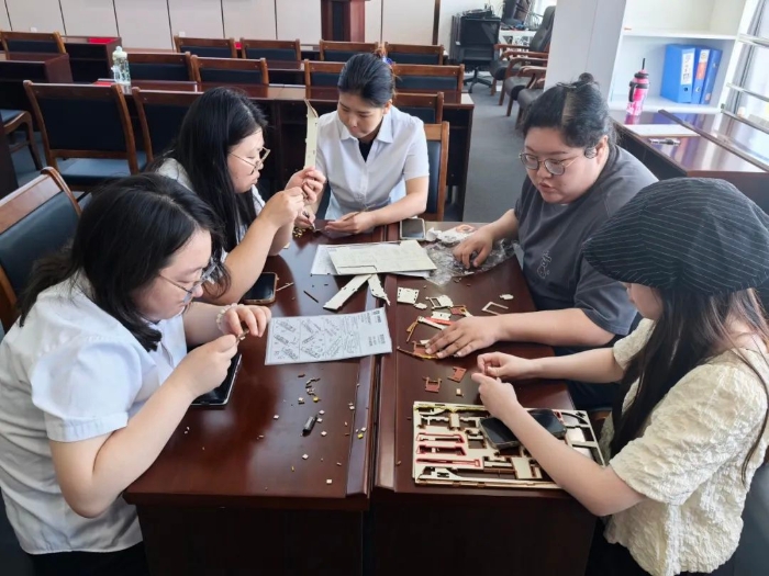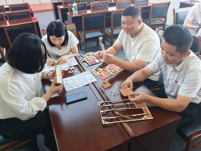 活动的实践环节紧密结合科技馆业务,全体干部职工以小组为单位,动手拼装了“南湖红船”模型。在拼装过程中,同志们加深了对红船结构及其象征意义的理解,更在相互协作、默契配合中锻炼了动手实践能力,体现了科学探索中严谨与合作的精神,切身领悟到共产党人同舟共济、团结拼搏的宝贵精神。一艘艘精致的红船模型逐渐成型,那段波澜壮阔的历史仿佛就在眼前,极大地增强了党组织的凝聚力和向心力,同志们再次感悟到共产党人栉风沐雨、艰苦创业的艰辛与不易,更加深刻的理解了厉行节约、反对浪费的重要性。